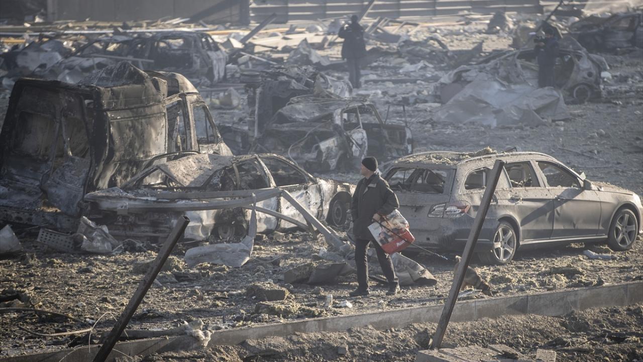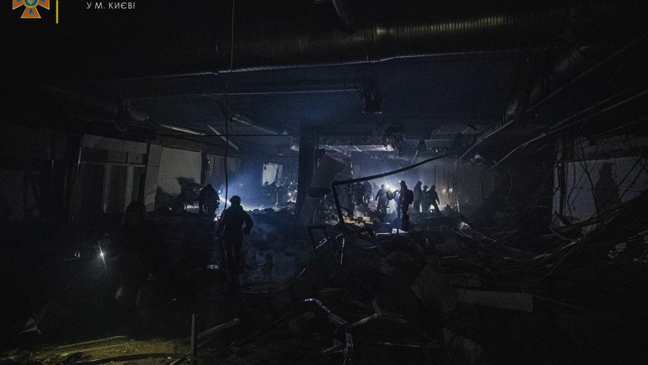 Gece, Kiev`de Podilskiy semtindeki alışveriş merkezine gerçekleştirilen saldırıda büyük ölçekli yıkım meydana geldiği ifade edildi.
