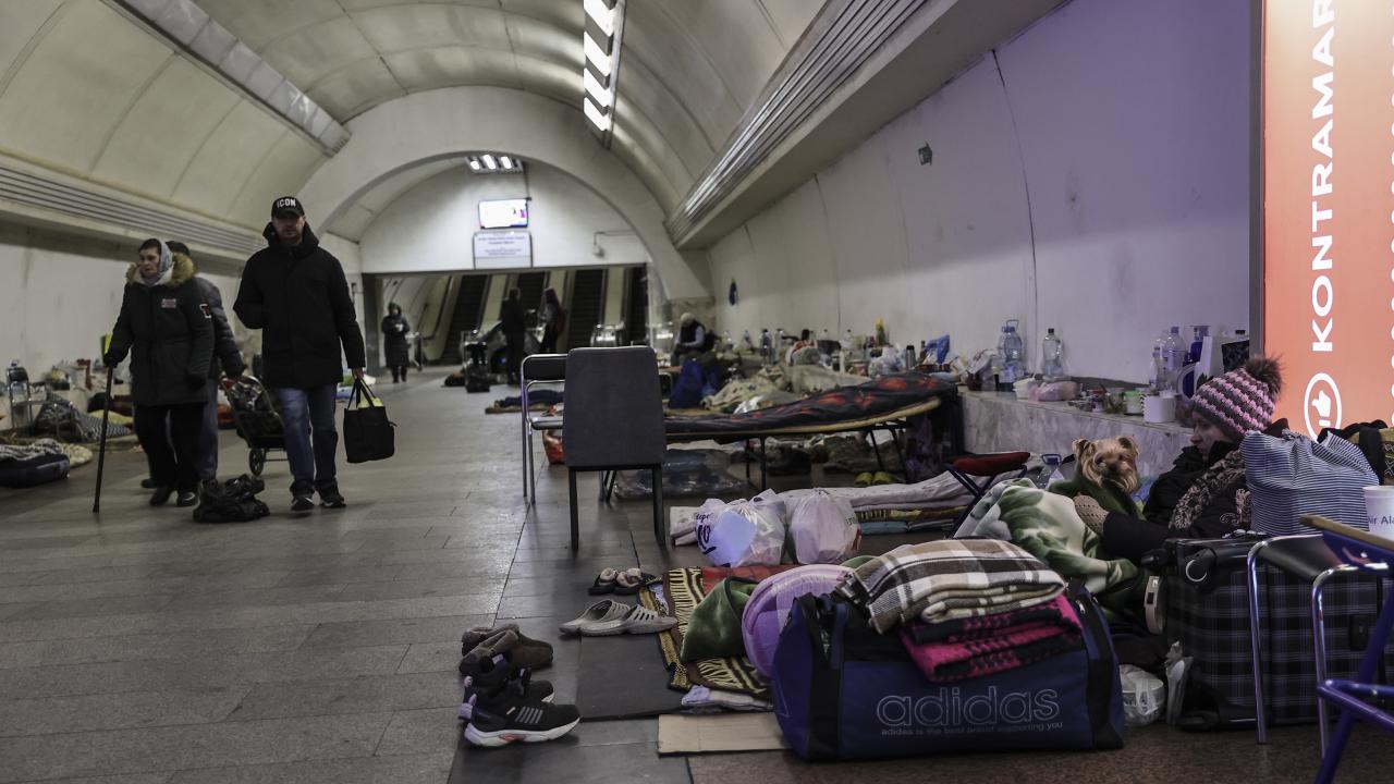 Kiev`de bulunan ve "dünyanın en derin metro istasyonu" olarak değerlendirilen Arsenalna metro istasyonu durağı da sığınak olarak Ukraynalılalara ev sahipliği yapıyor.
