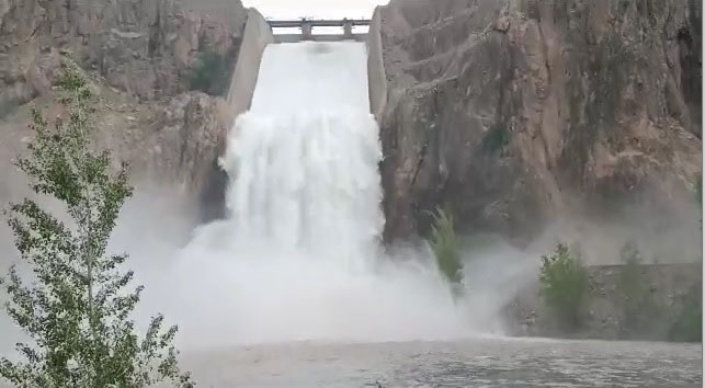 Kılıçkaya Barajı'nda doluluk oranı yüzde 100'e ulaşınca kapaklar açıldı