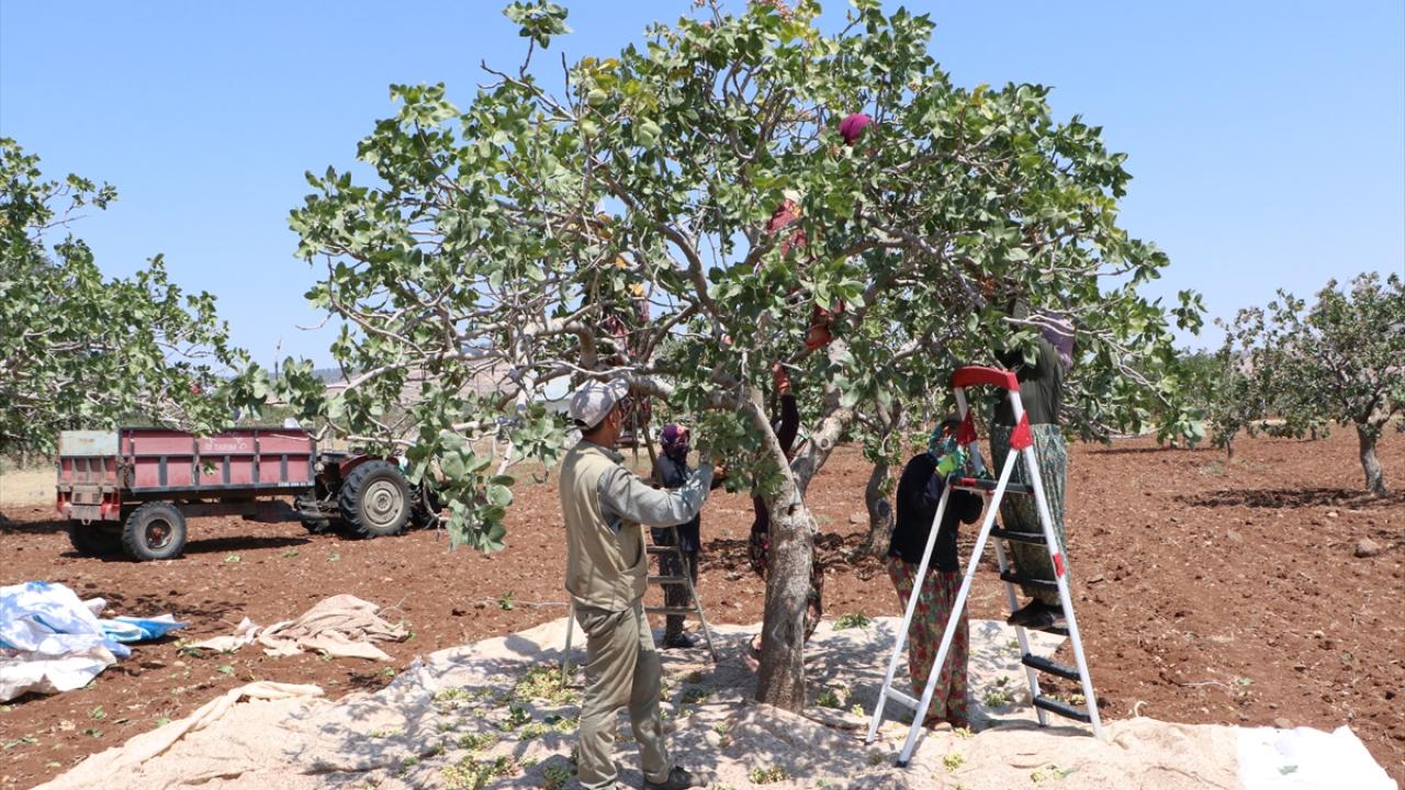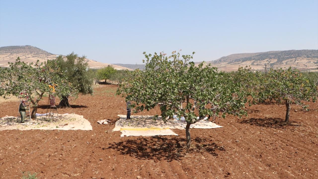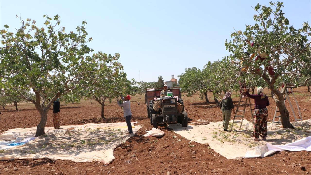 Türkiye`nin önemli Antep fıstığı üretim merkezlerinden olan Kilis`te, çiftçiler havanın serin olduğu sabah ve akşam saatlerinde dallardaki fıstıkları topluyor.