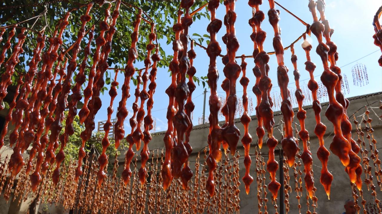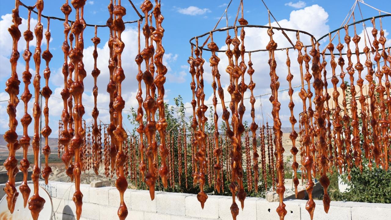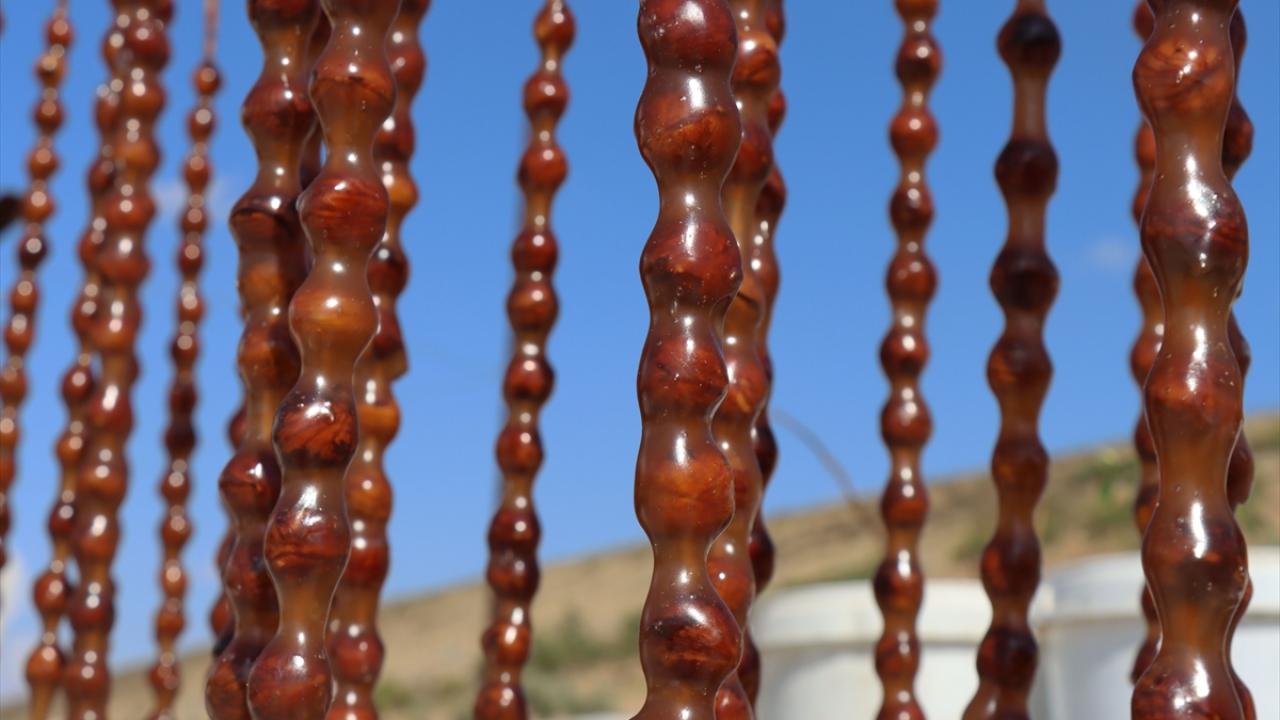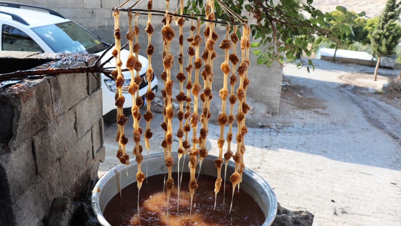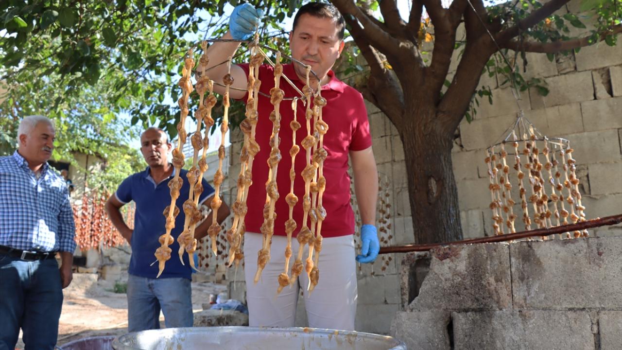 Geleneksel yöntemlerle bu ürünleri hazırlayan üreticiler, pekmez ve nişastayı krema şeklinde hazırlıyor. Ardından, daha önce iplere dizip kuruttukları ceviz içini hazırladıkları karışıma batırıyor.