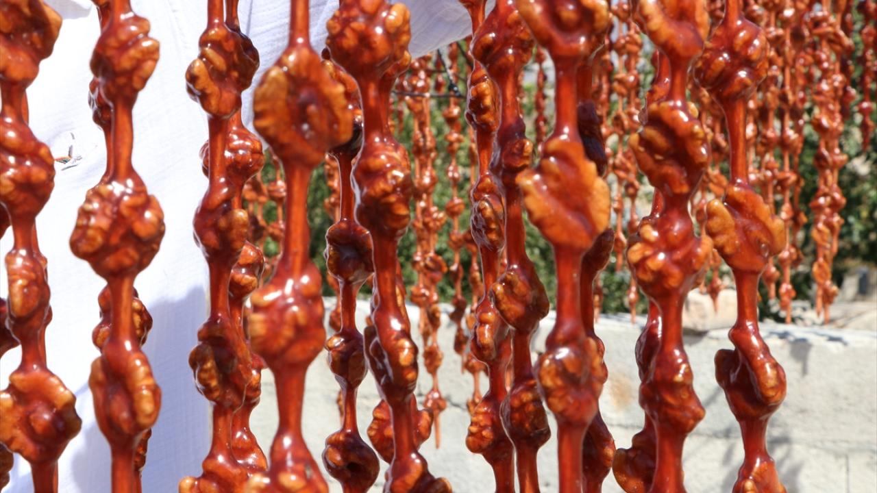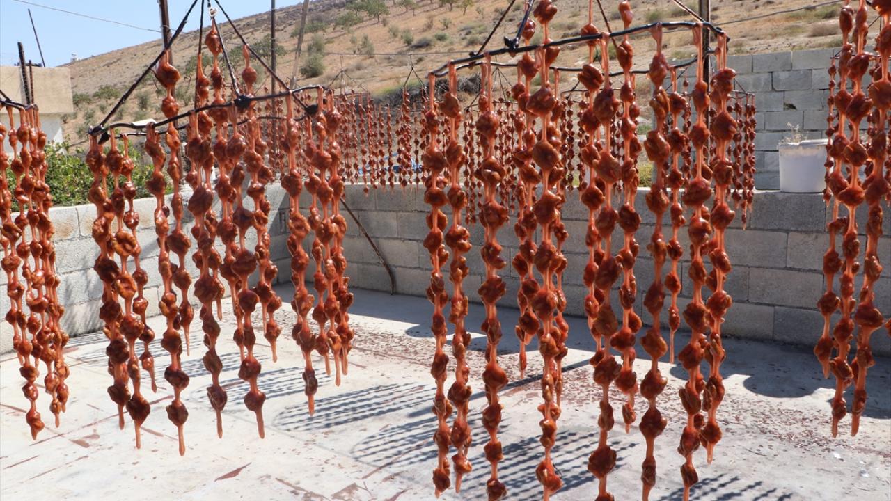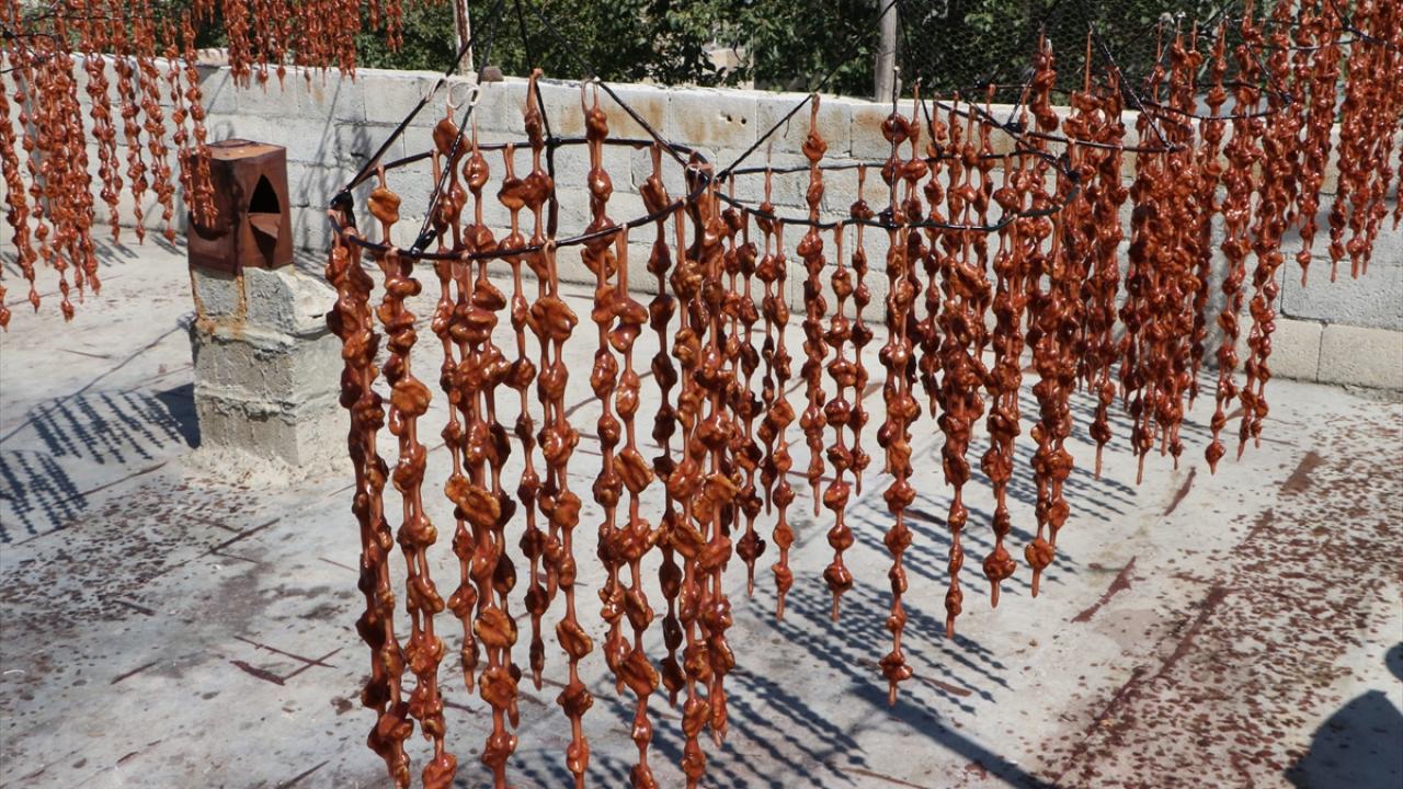 Kentte üzümlerin hasat edilmesinin ardından üreticiler, geleneksel yöntemlerle cevizli sucuk üretimi için çalışmalara başladı.