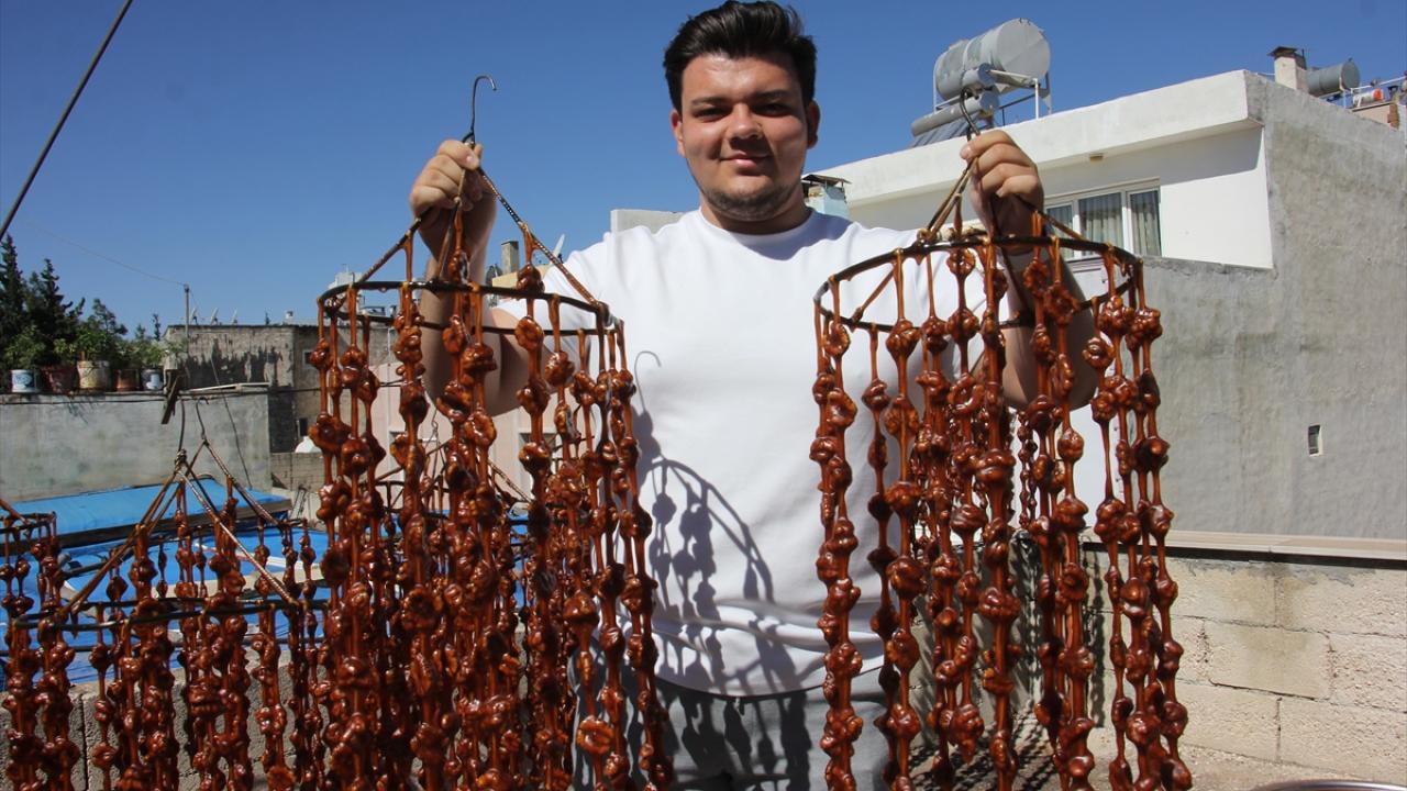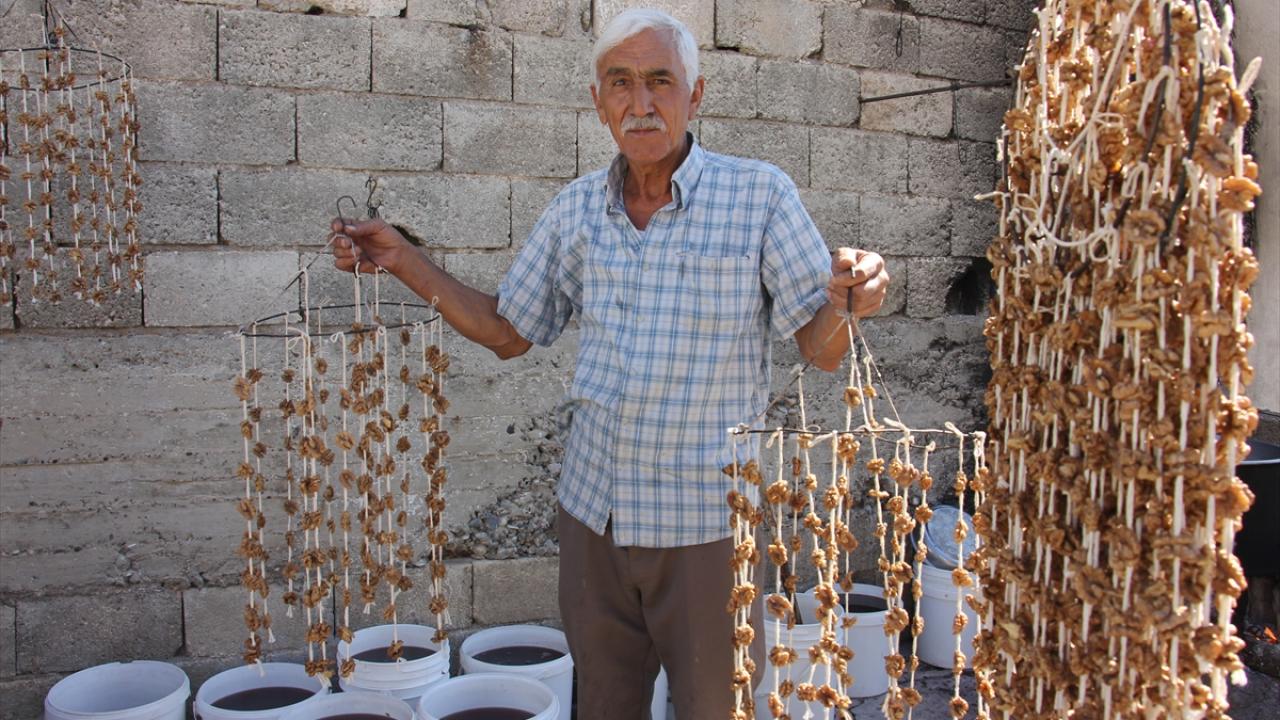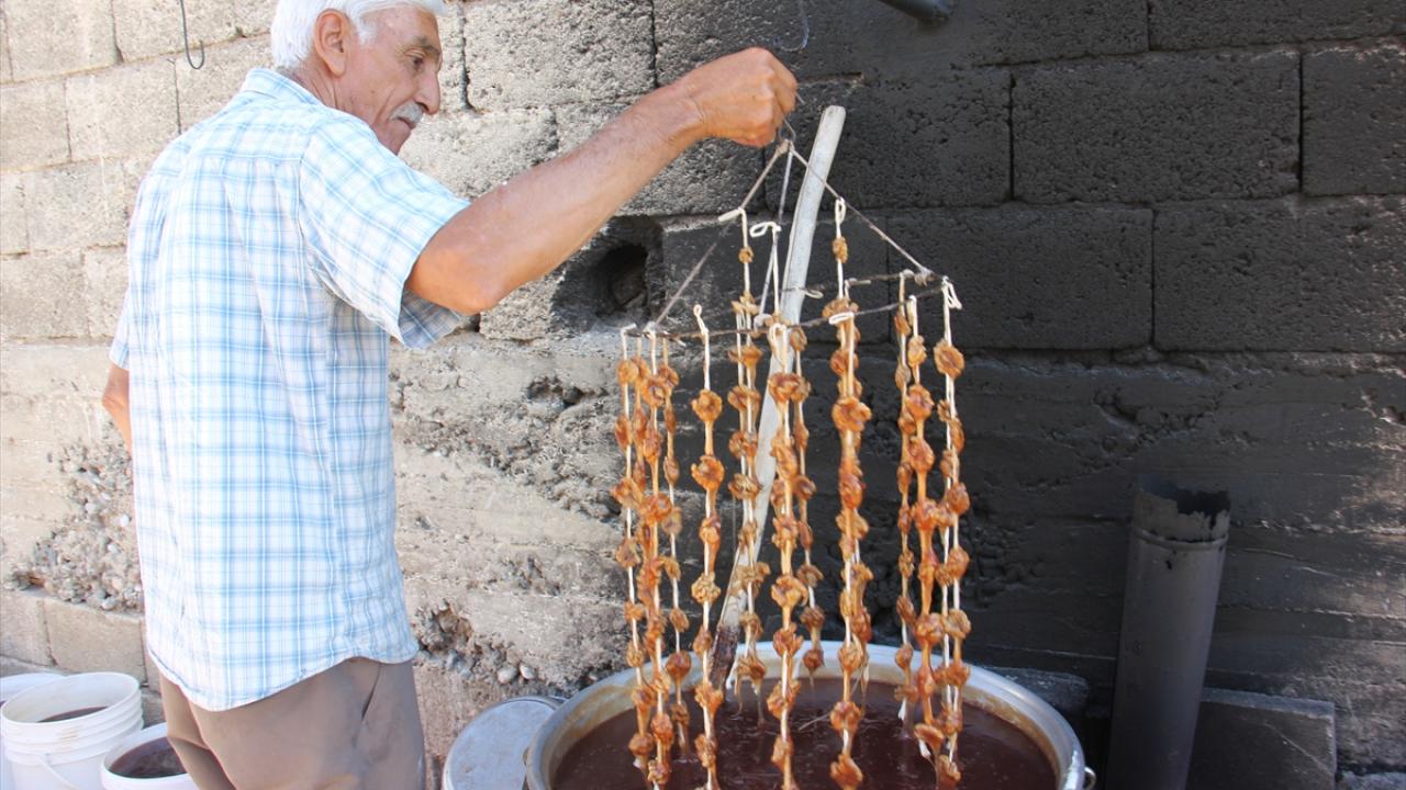 Geleneksel yöntemlerle bu ürünleri hazırlayan üreticiler, pekmez ve nişastayı krema şeklinde hazırlıyor. Ardından, daha önce iplere dizip kuruttukları ceviz içini hazırladıkları karışıma batırıyor.