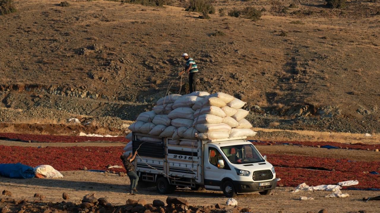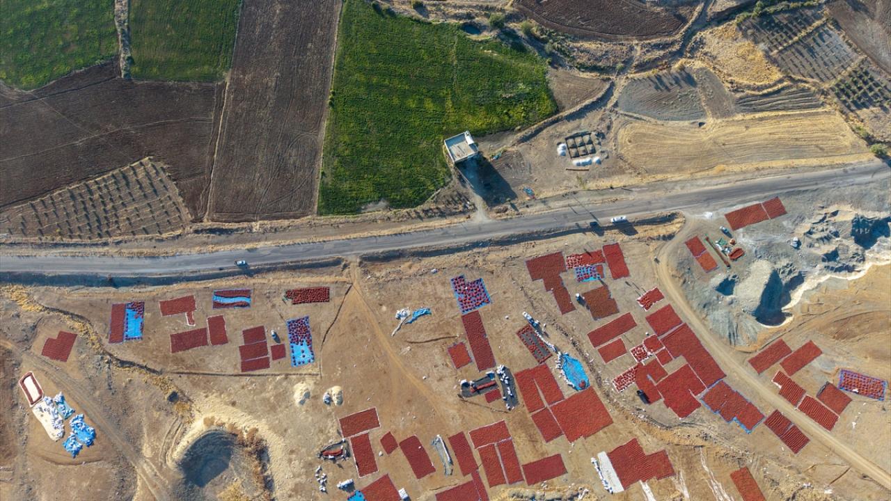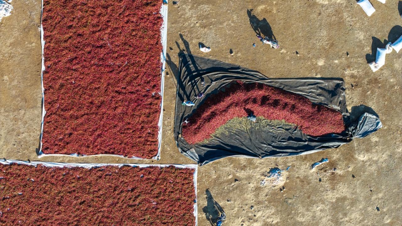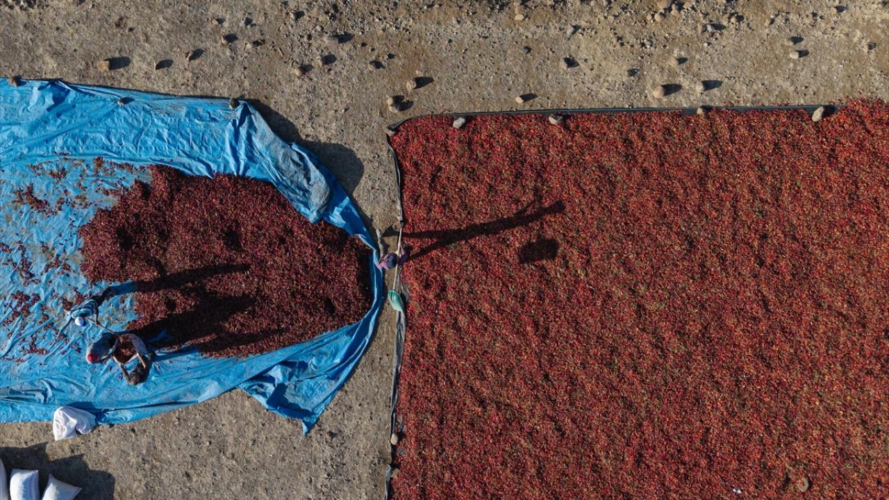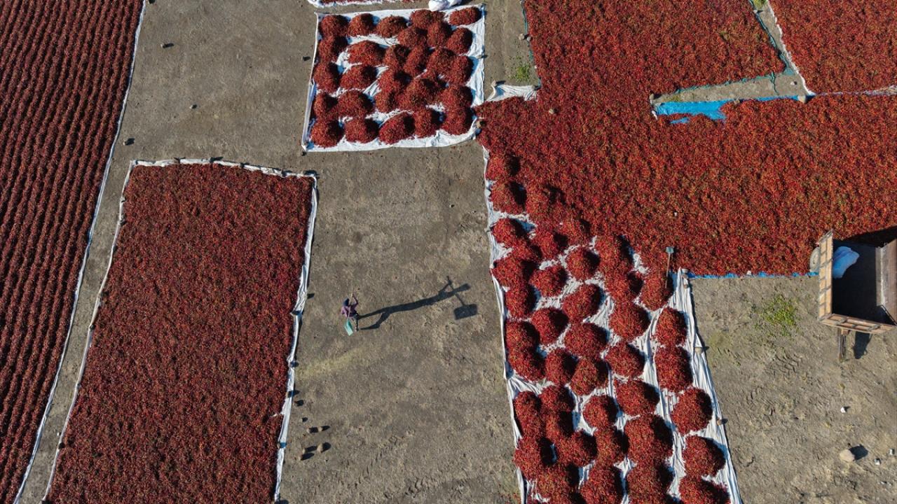 Tarlalardan toplanan biberler, sapları ayıklanarak ipliklere diziliyor veya yere serilerek güneş altında kurumaya bırakılıyor.