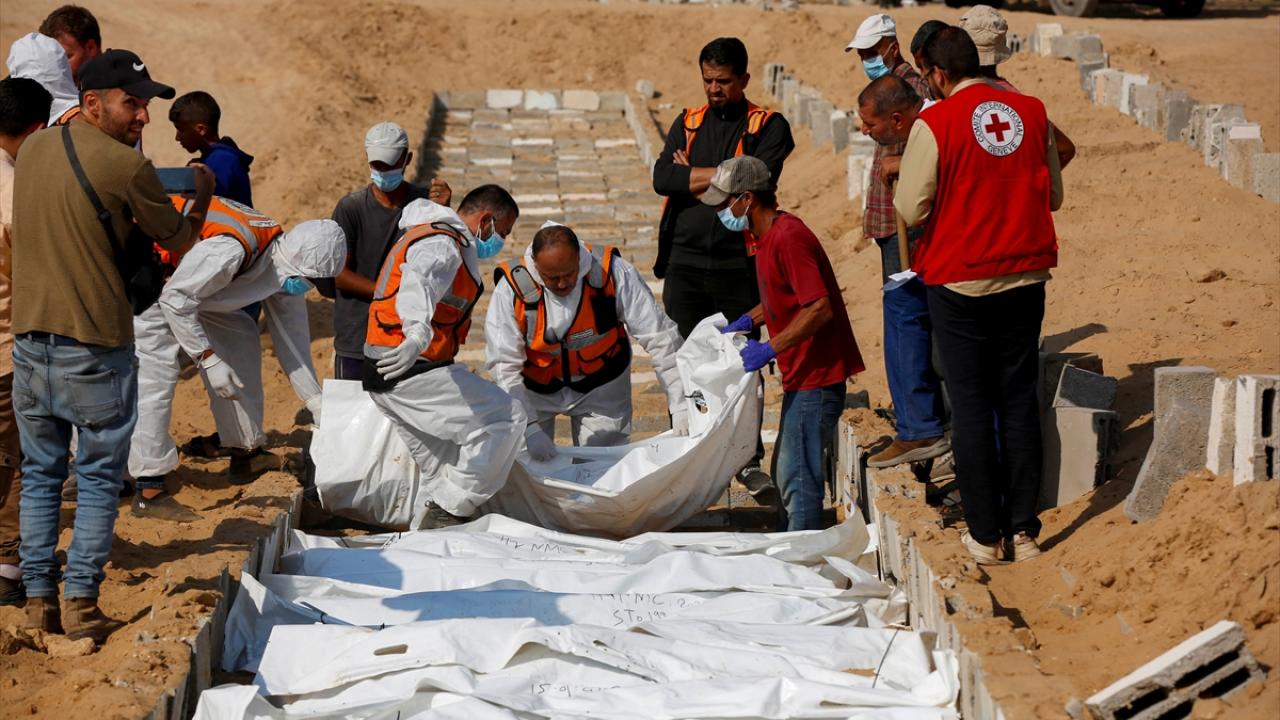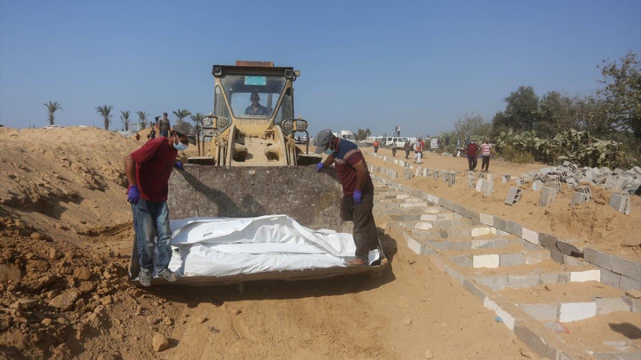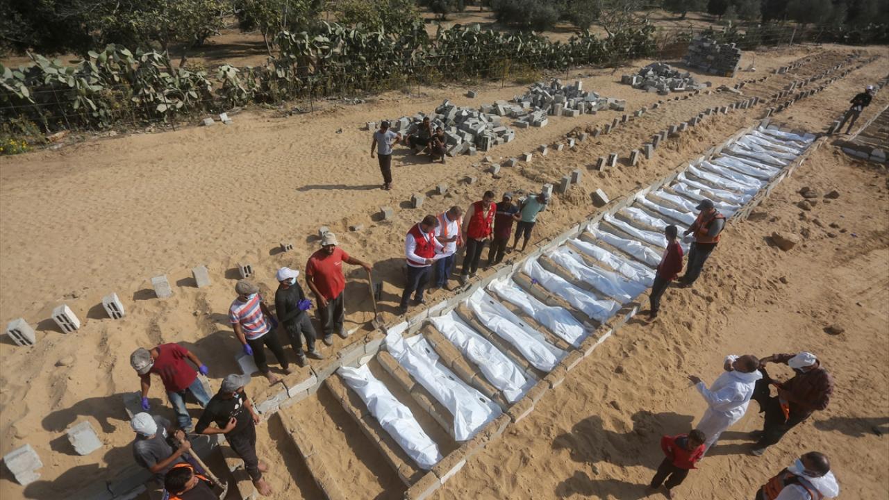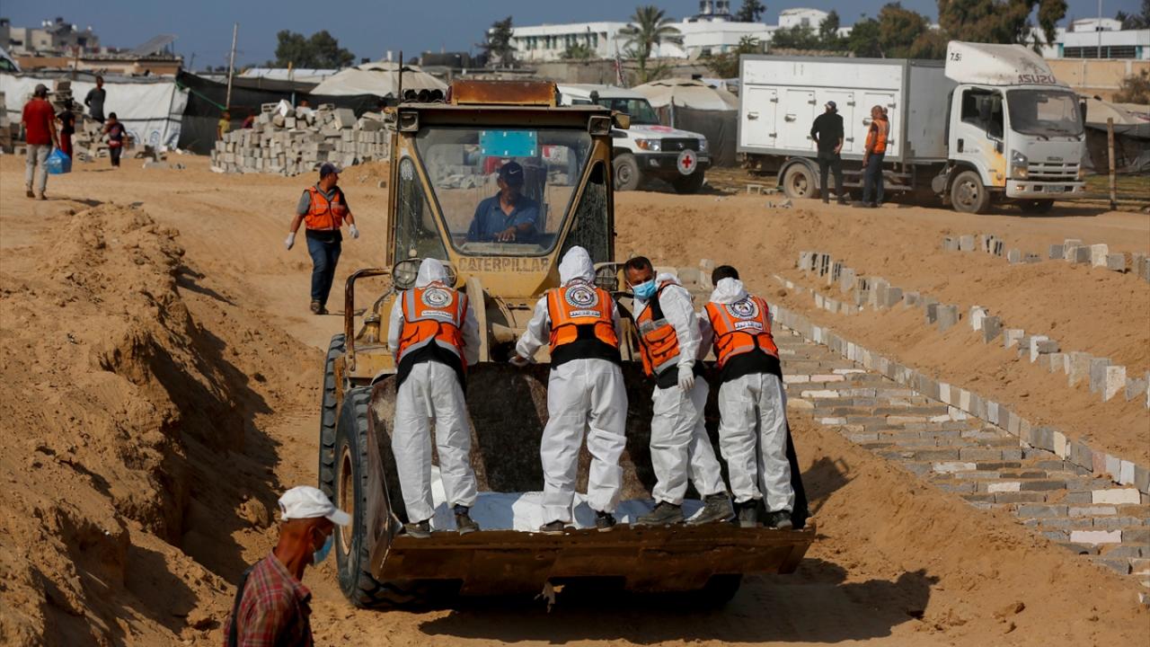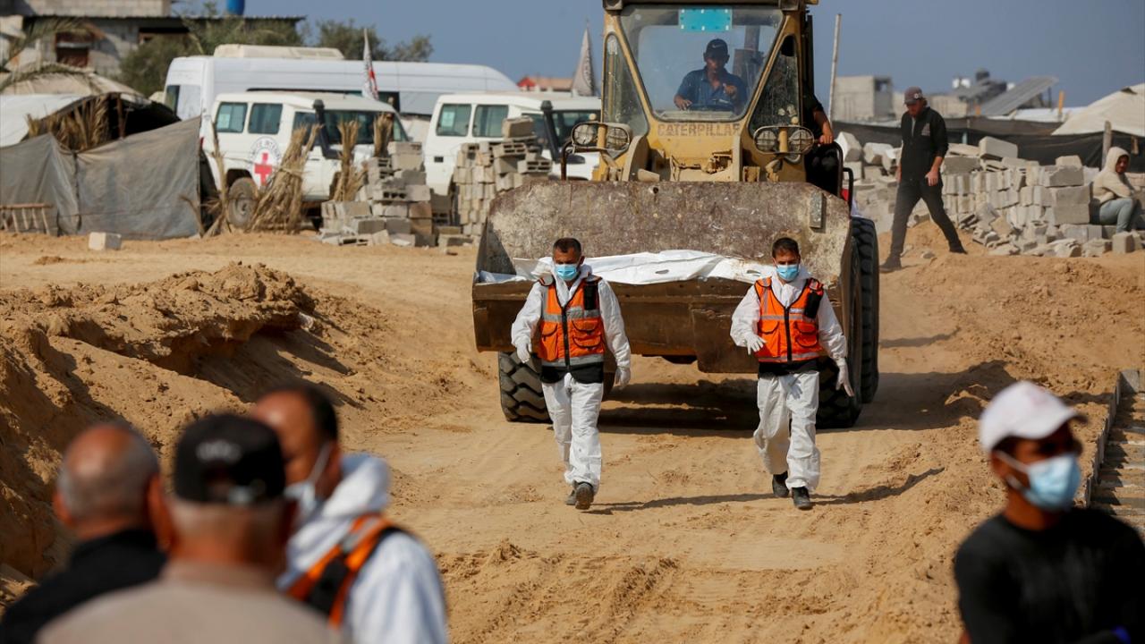 Ateşkes anlaşması kapsamında İsrail tarafından cenazeleri teslim ve kimliği tespit edilmeyen 24 Gazzellinin naaşı, Kızılhaç ve sivil savunma ekipleri tarafından Deyr Belah'ta defnedildi.