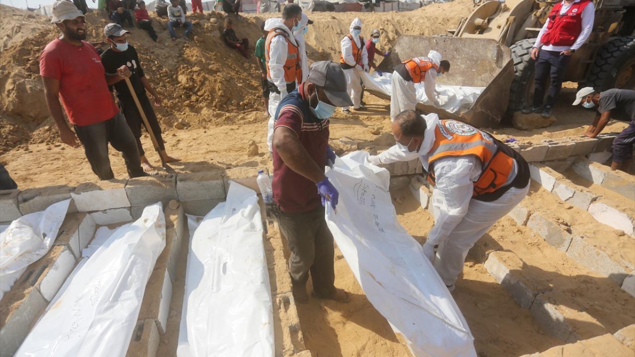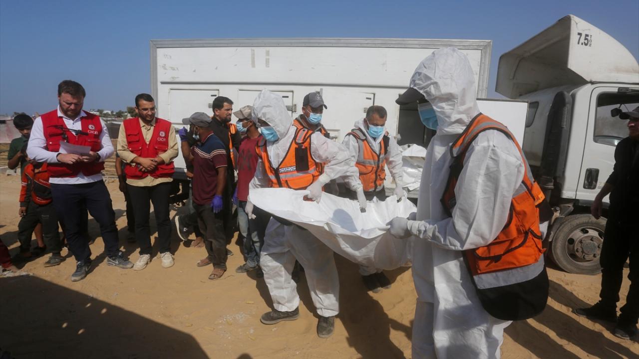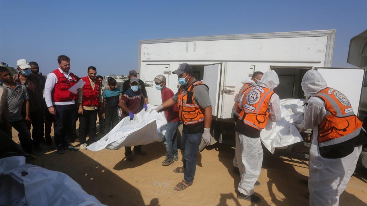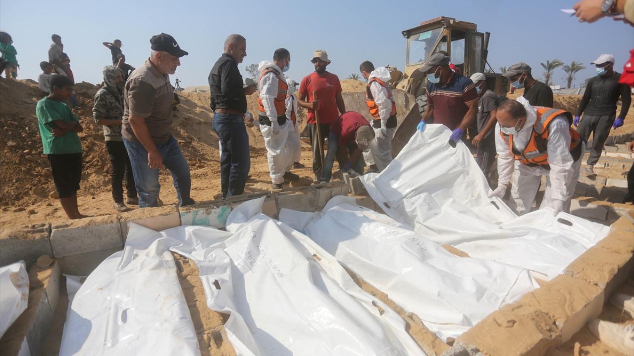 Ateşkes anlaşması kapsamında İsrail tarafından cenazeleri teslim ve kimliği tespit edilmeyen 24 Gazzellinin naaşı, Kızılhaç ve sivil savunma ekipleri tarafından Deyr Belah'ta defnedildi.
