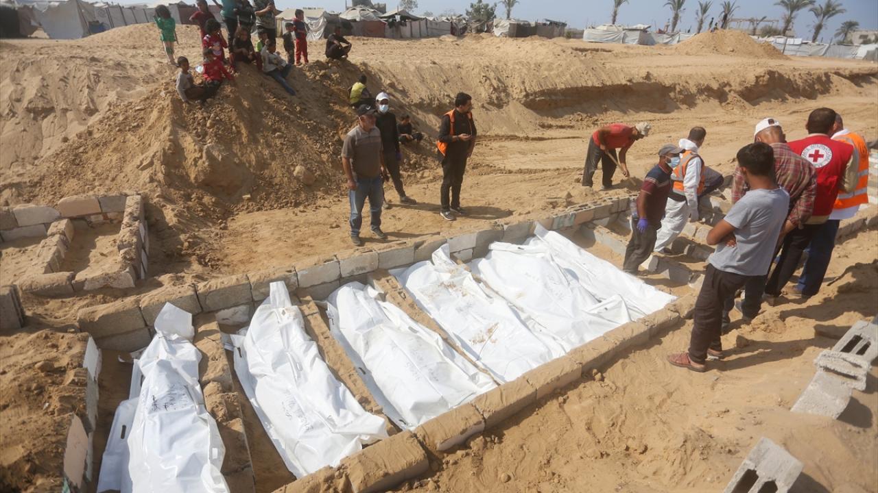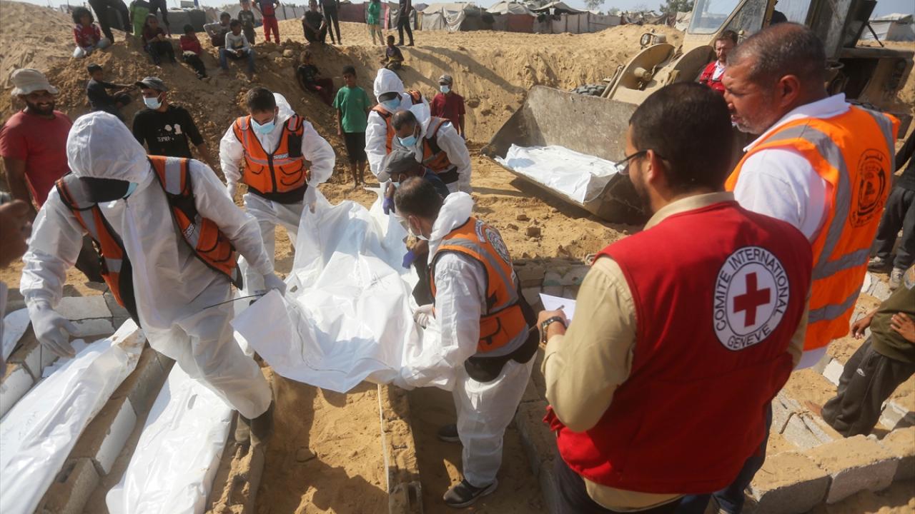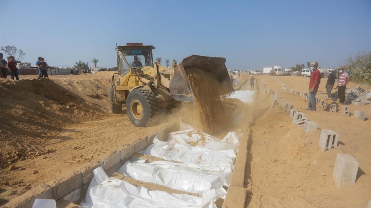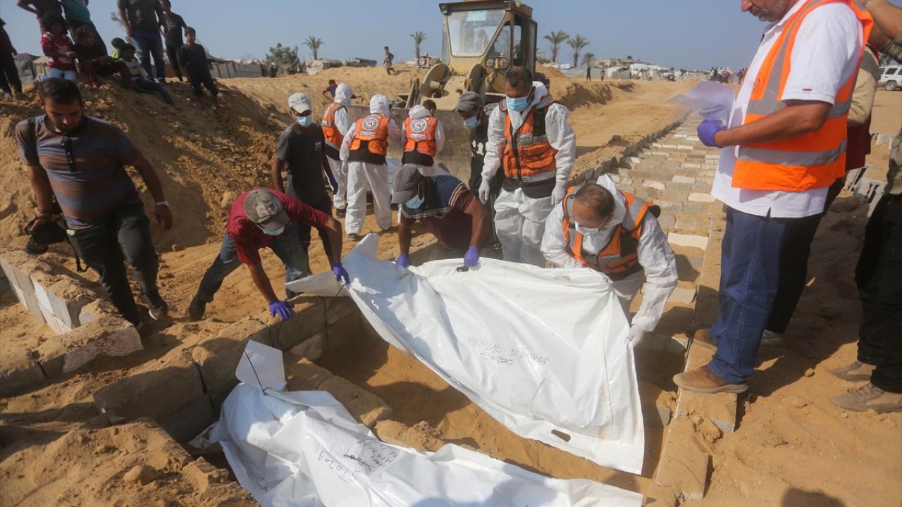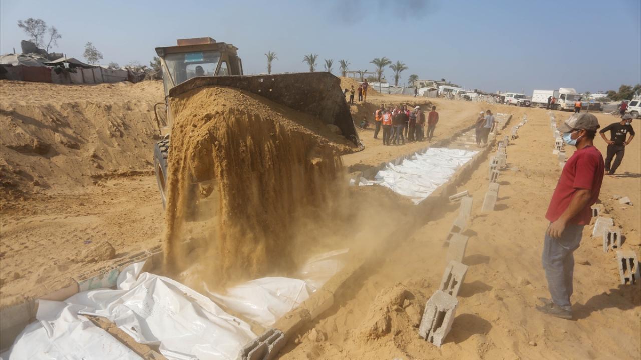 Ateşkes anlaşması kapsamında İsrail tarafından cenazeleri teslim ve kimliği tespit edilmeyen 24 Gazzellinin naaşı, Kızılhaç ve sivil savunma ekipleri tarafından Deyr Belah'ta defnedildi.