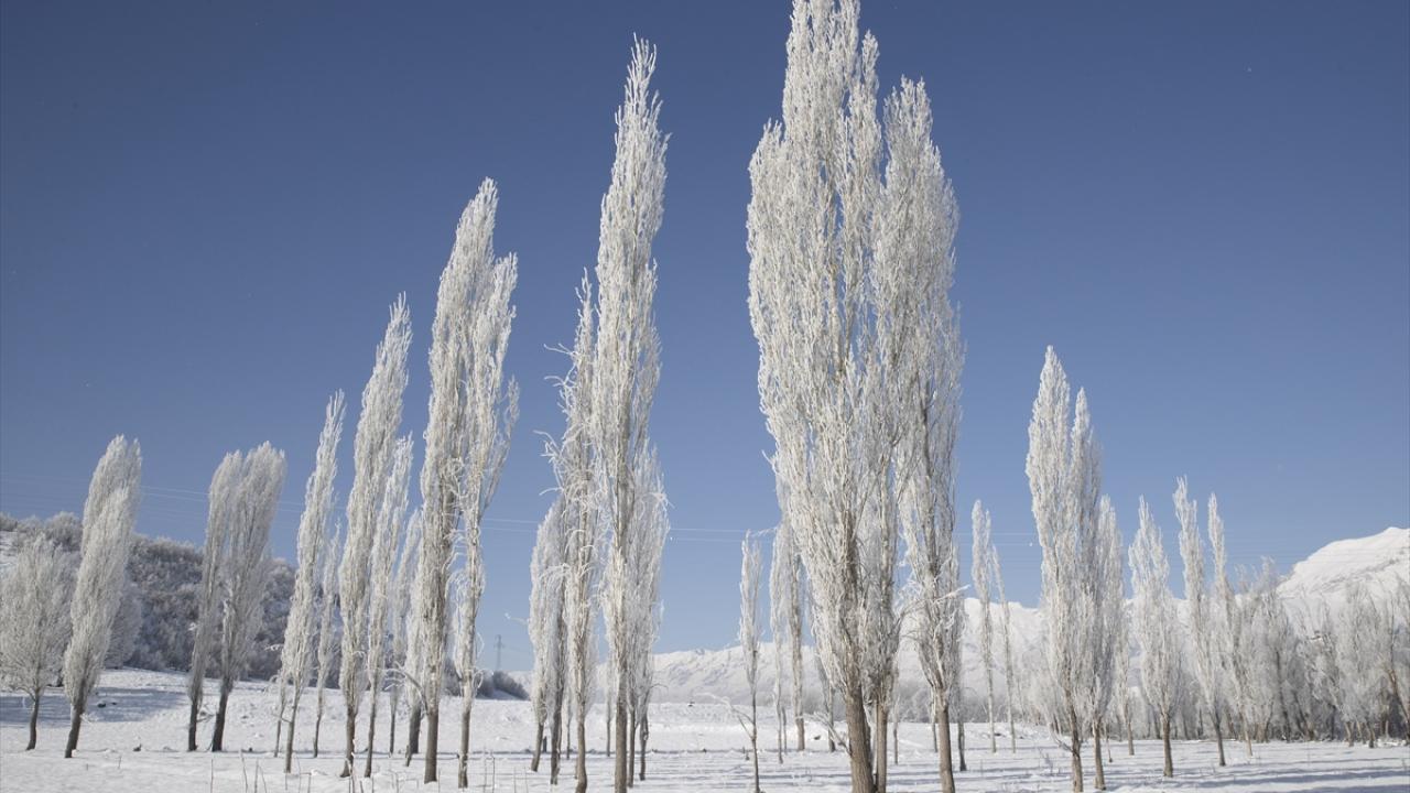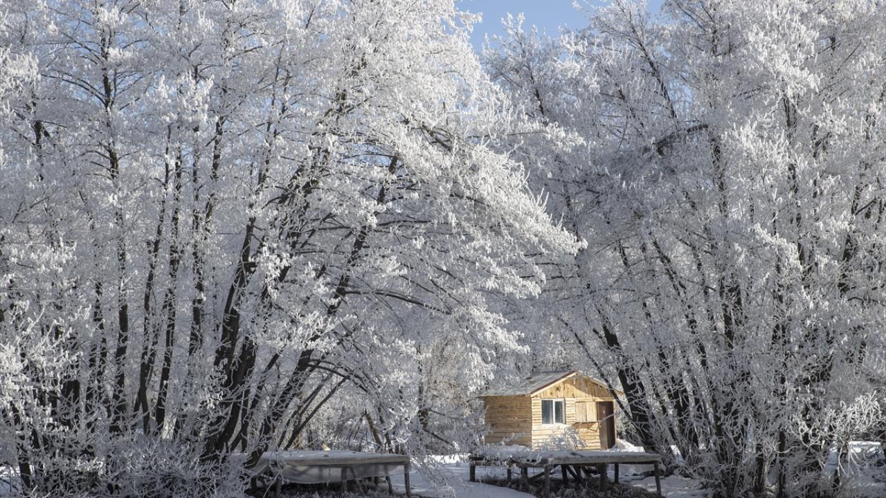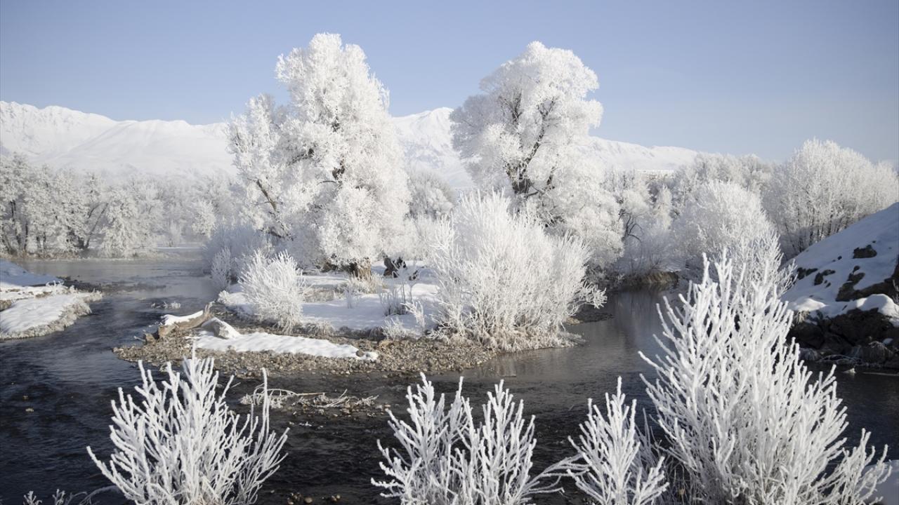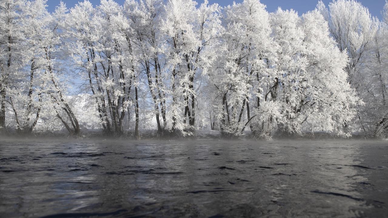 Soğukların etkisiyle vadilerdeki akarsu kıyılarında bulunan meşe, kavak ve söğüt ağaçları kırağıyla kaplandı.