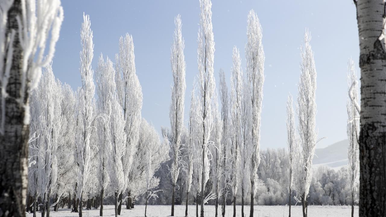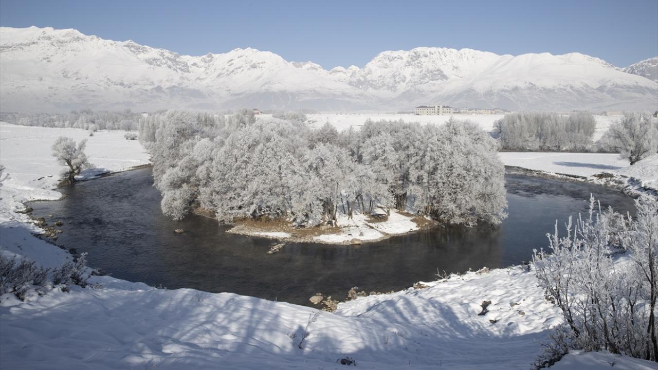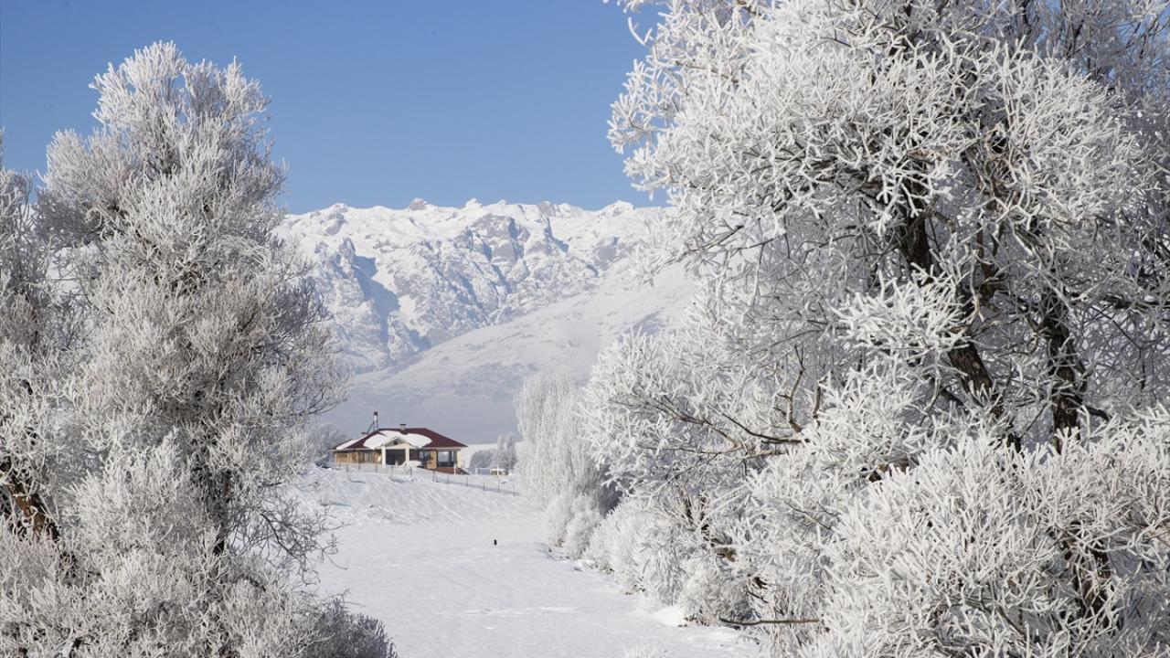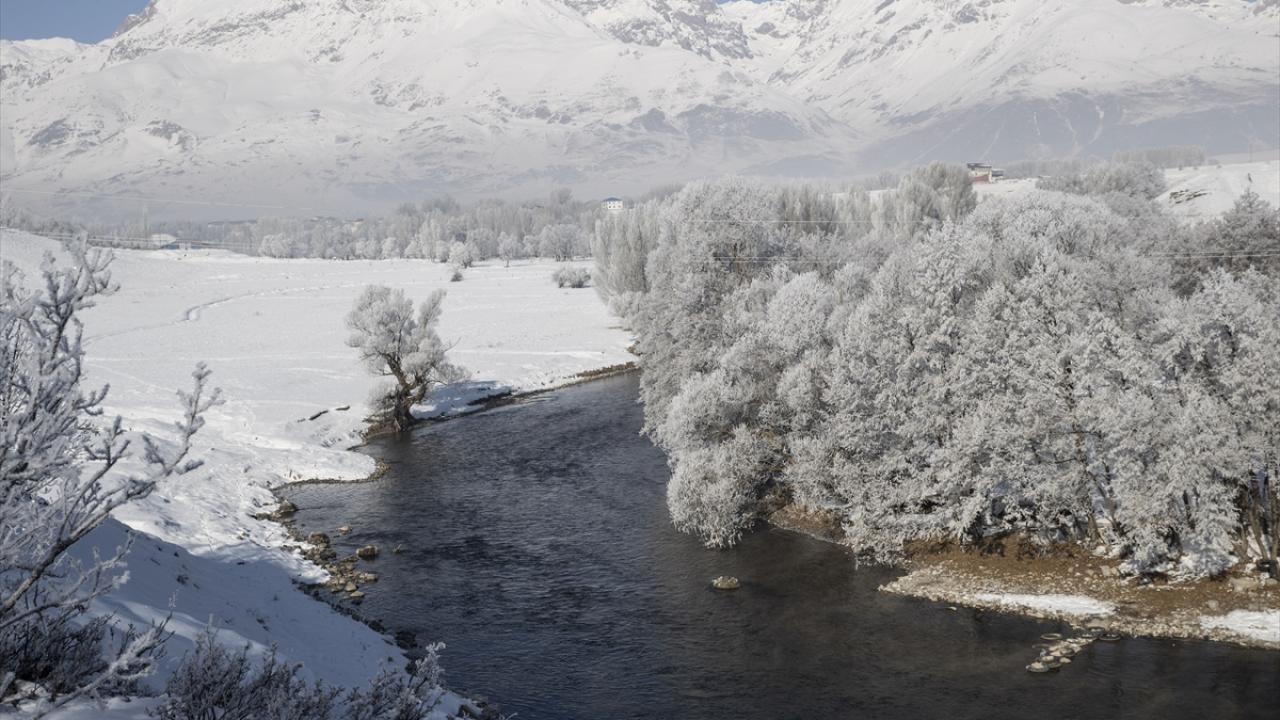 Soğukların etkisiyle vadilerdeki akarsu kıyılarında bulunan meşe, kavak ve söğüt ağaçları kırağıyla kaplandı.