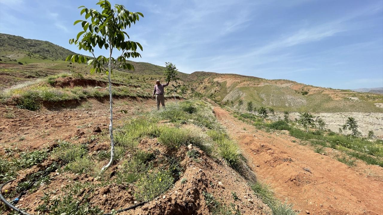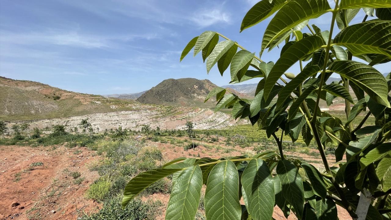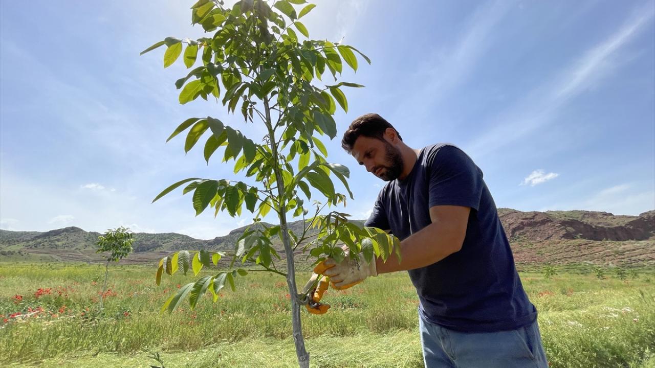 Çocukları Nuri ve Akif ile çalışmaya başlayan Hamza Doğan, 2020`de kendi iş makineleriyle çorak ve engebeli araziyi büyük emeklerle ceviz fidanı dikimi için hazırladı. Buraya 16 bin fidan diken Doğan, fidanları sulamak için boru döşeyerek 7 kilometre uzaktaki kaynaktan su getirdi.