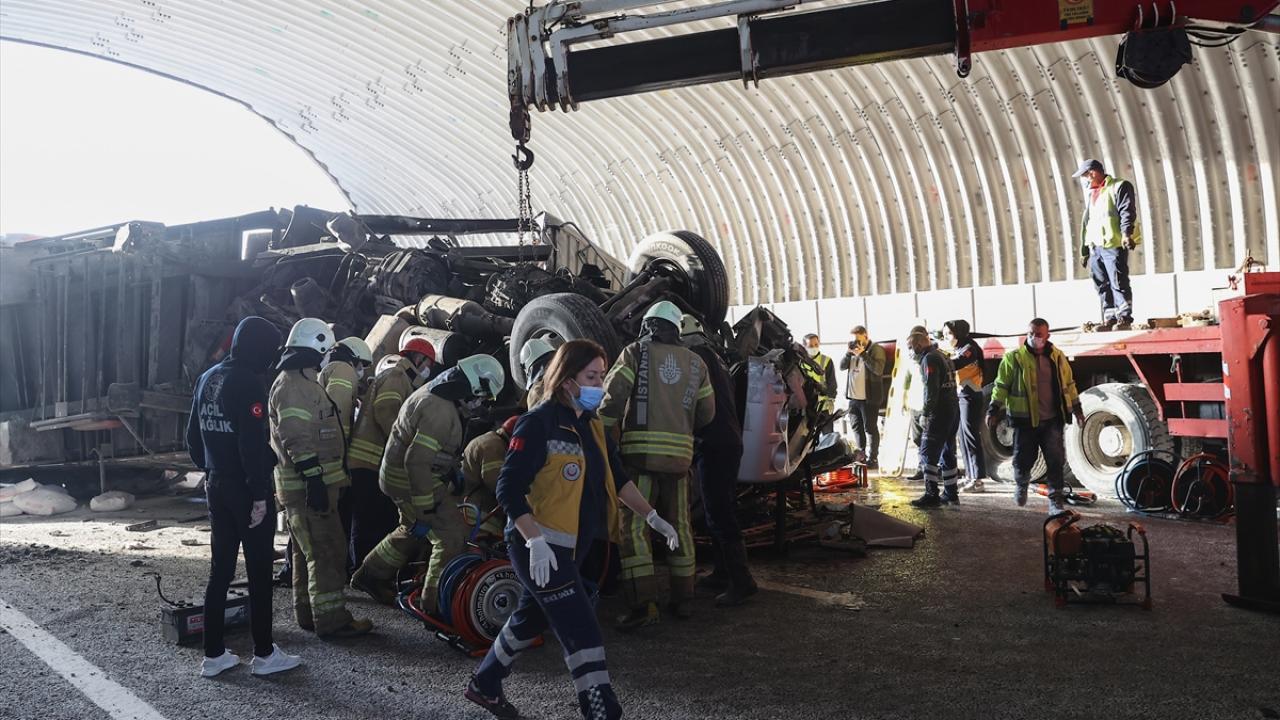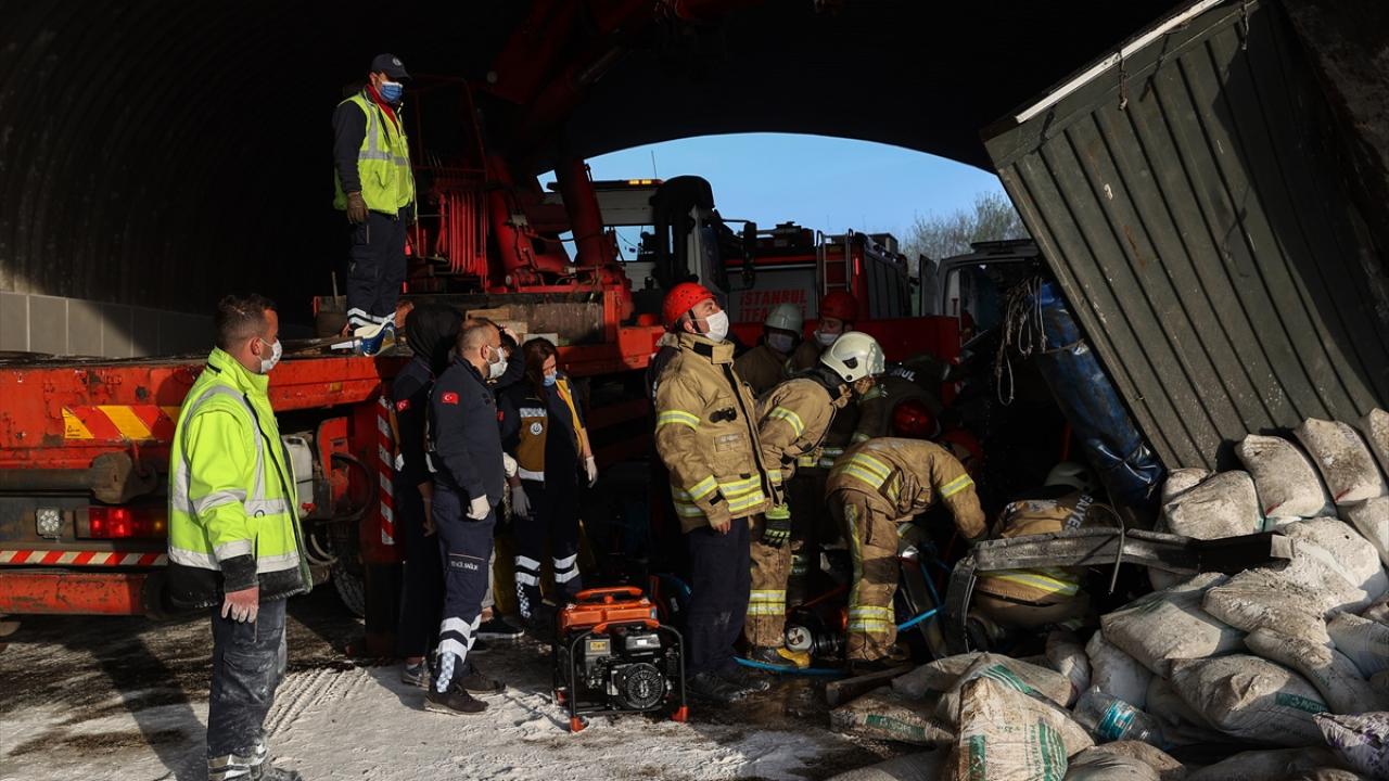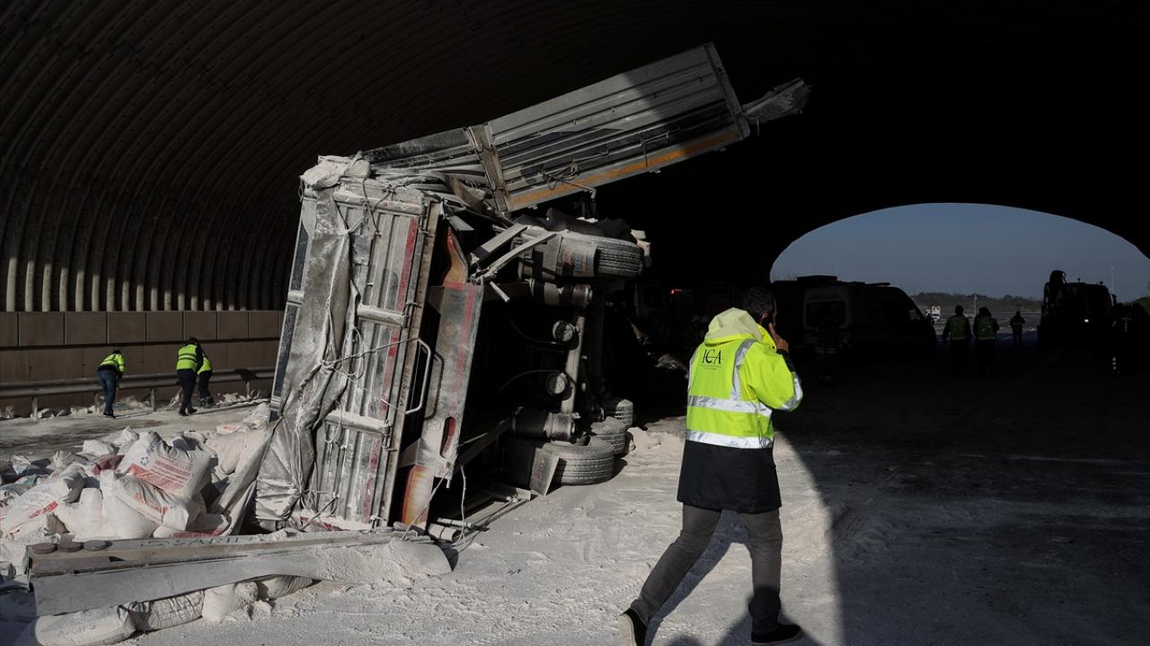 Kuzey Marmara Otoyolu'nda kireç yüklü tır, köprünün ayağına çarparak devrildi. Kaza nedeniyle Edirne istikameti trafiğe kapandı.