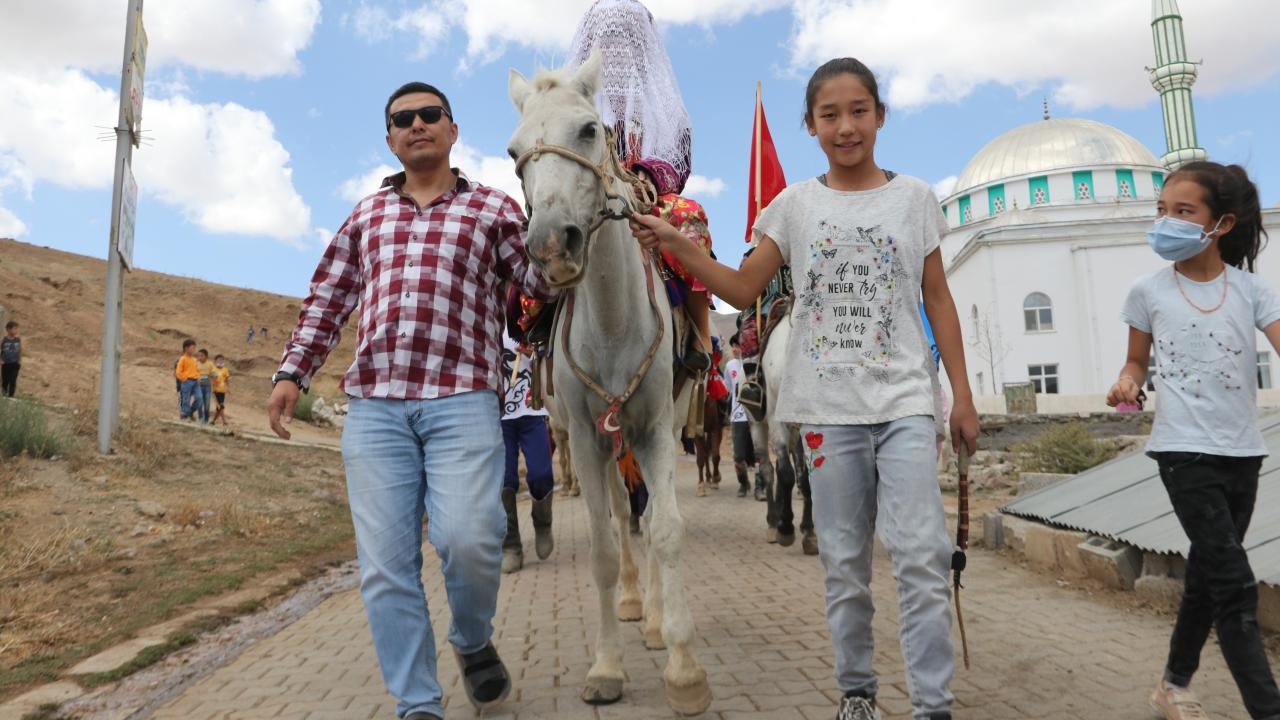 Yeni evlenen gelin gelenek ve göreneklerine uygun, at sırtında damat evine getirildi.