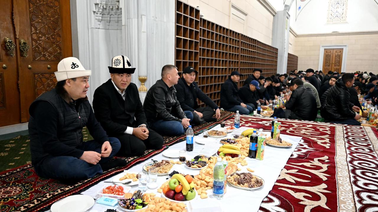 Kırgızistan Cumhurbaşkanı Sadır Caparov, başkent Bişkek'teki Cumhuriyet Merkez İmam Serahsi Camisi'nde iftar verdi. Caparov, İmam Serahsi Camisi'nde toplanan vatandaşlarla saf tutarak akşam namazını kıldı ve ardından iftar yaptı.