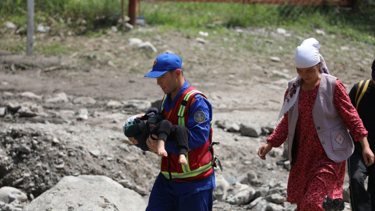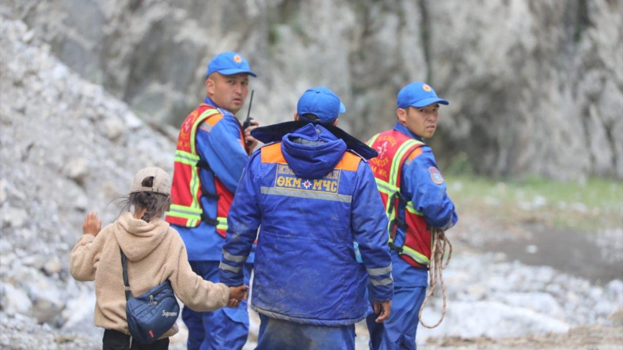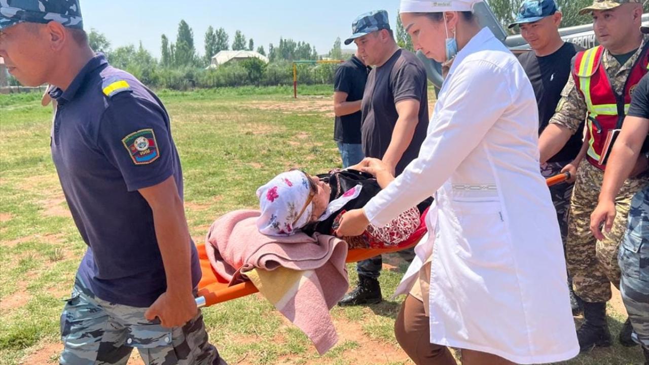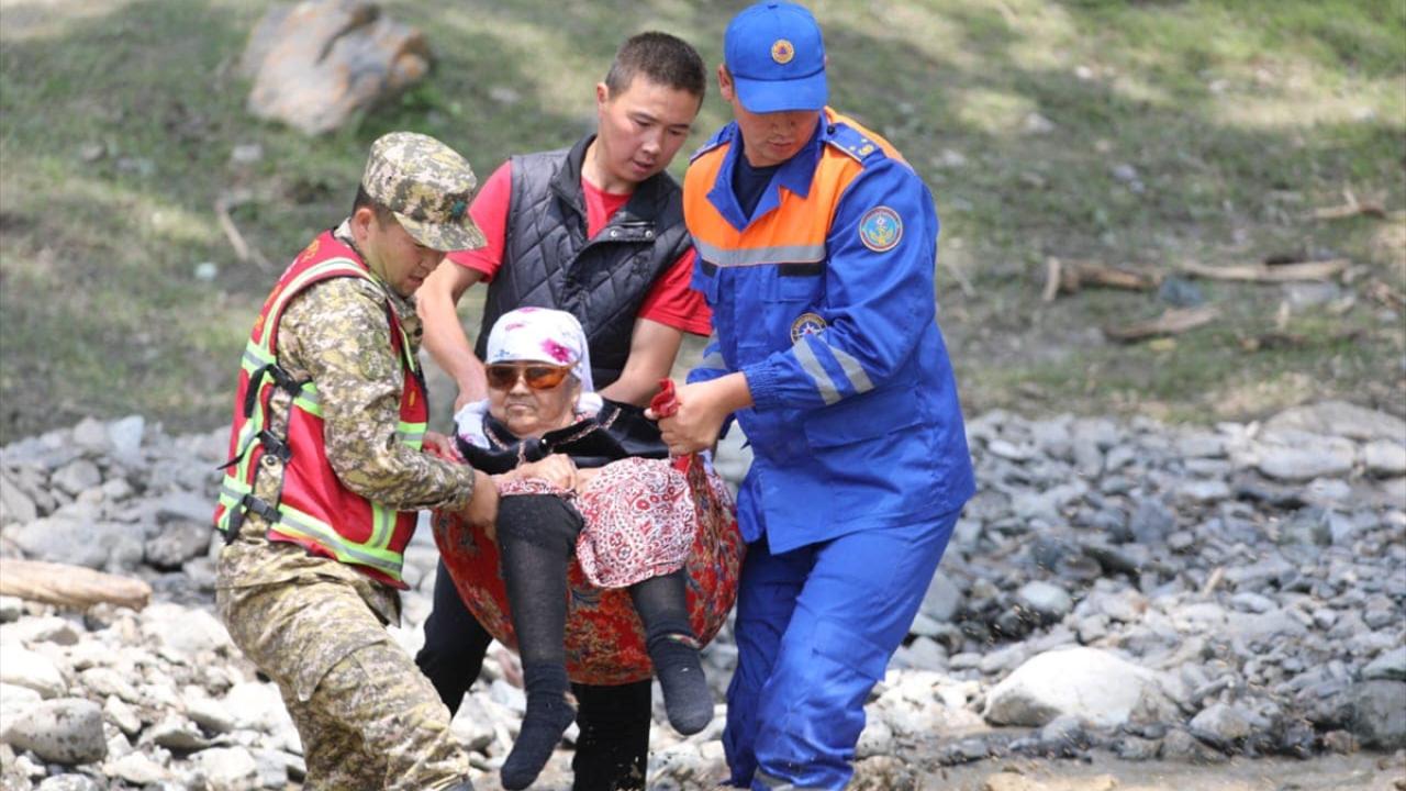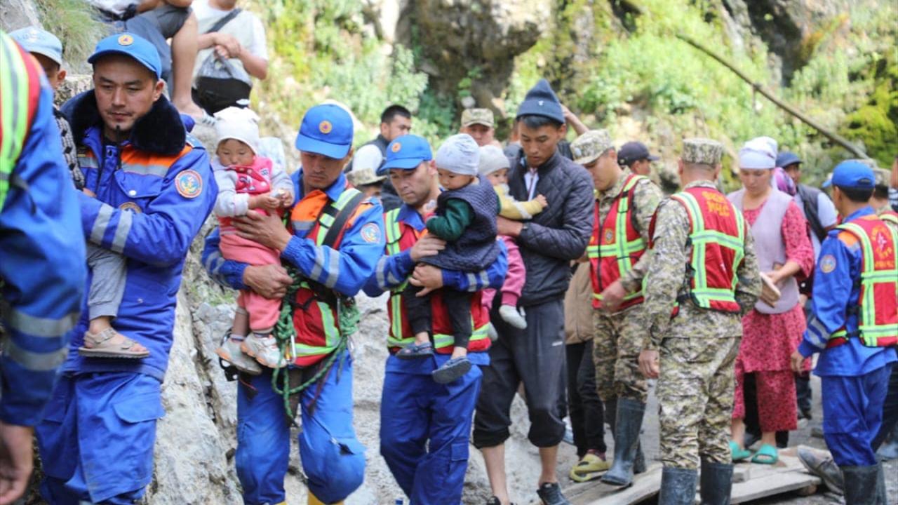 Nookat ilçesinin Abşır Ata köyündeki bir tatil yerinde sel nedeniyle mahsur kalan yüzlerce kişi arama kurtarma ekiplerince helikopter ve diğer araçlarla güvenli yerlere tahliye edildi.