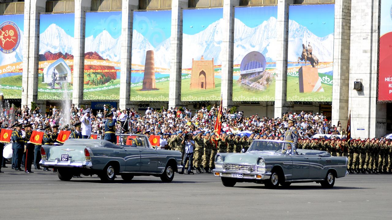 Sovyetler Birliği'nin dağılmasıyla 31 Ağustos 1991'de bağımsızlığını ilan eden Kırgızistan'da, Bağımsızlık Bayramı için başkent Bişkek'teki Ala-Too Meydanı'nda askeri geçit töreni düzenlendi.