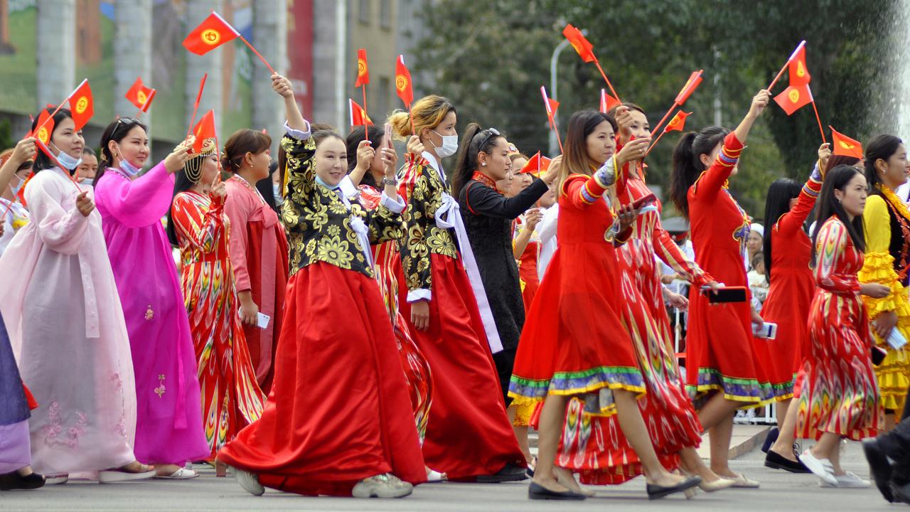 Törende, askeri silah ve araçların sergilenmesinin ardından atlılar ile devlet kurumların ve bazı özel şirketlerin çalışanlarının yanı sıra etnik halkların temsilcilerinin geçidi de yapıldı.