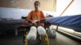 İsrail saldırısında iki bacağını kaybeden Filistinli çocuk, protez bacak sahibi olmayı bekliyor