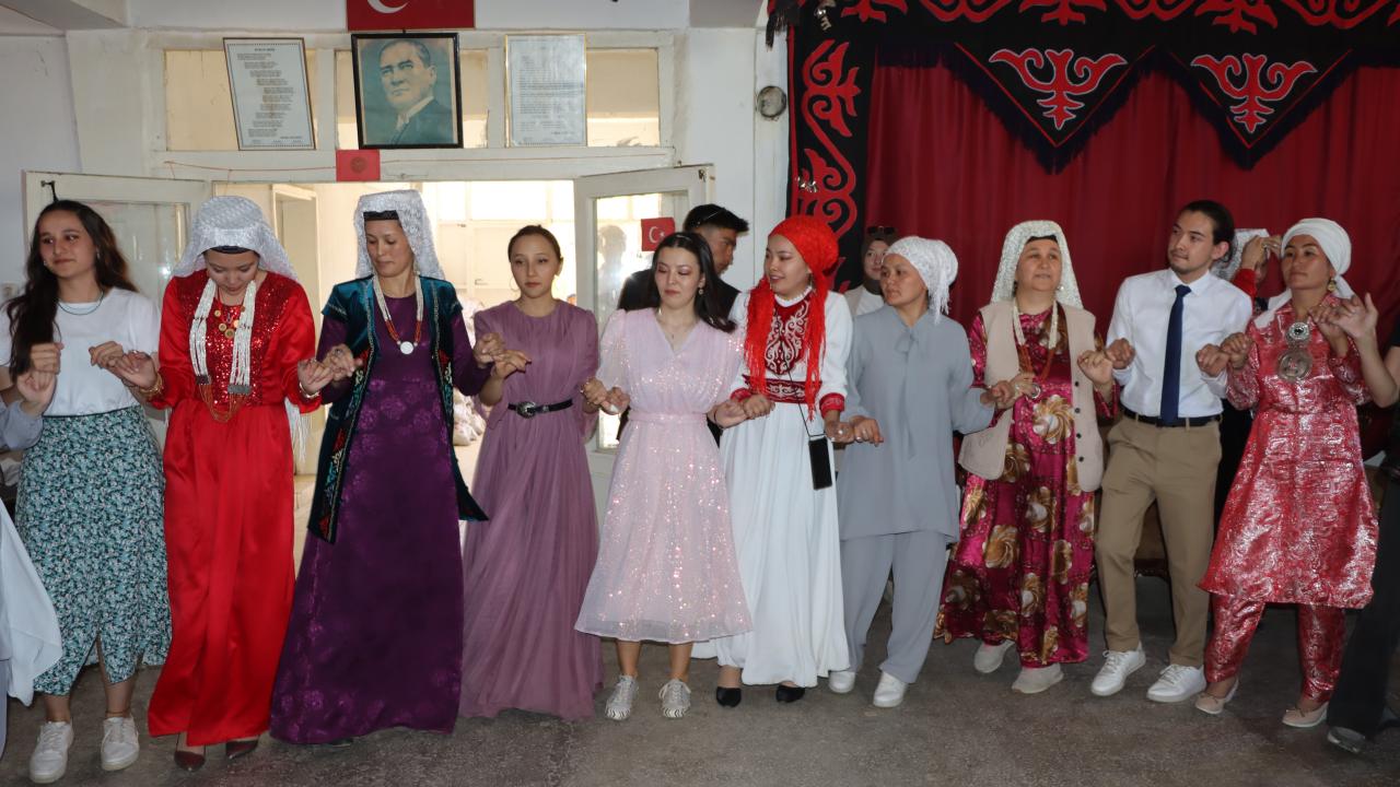 Düğün için yöresel kıyafetlerini giyerek hazırlıklara başlayan mahalleliler, Kırgız ve Türk ezgileri eşliğinde oyunlar oynadı, halay çekti.