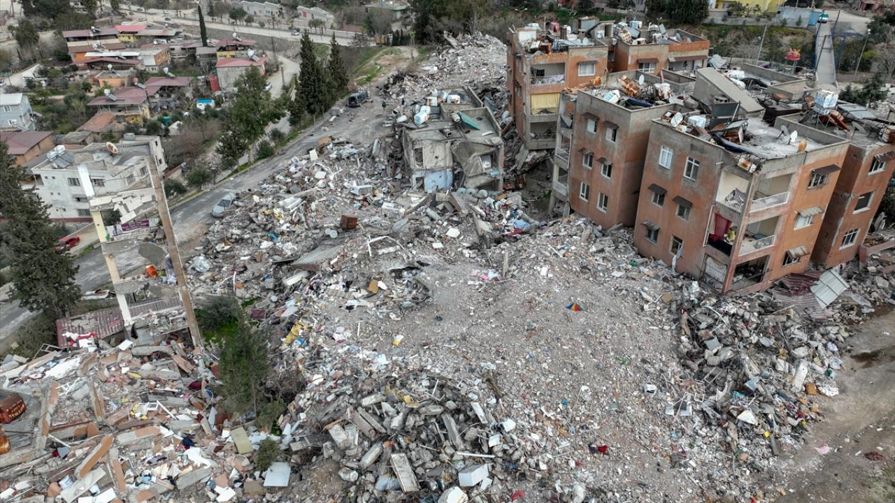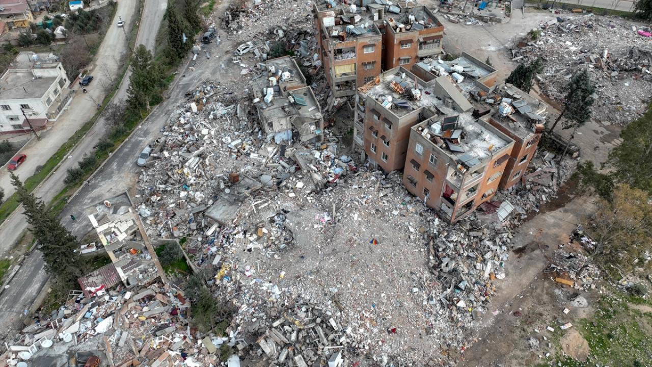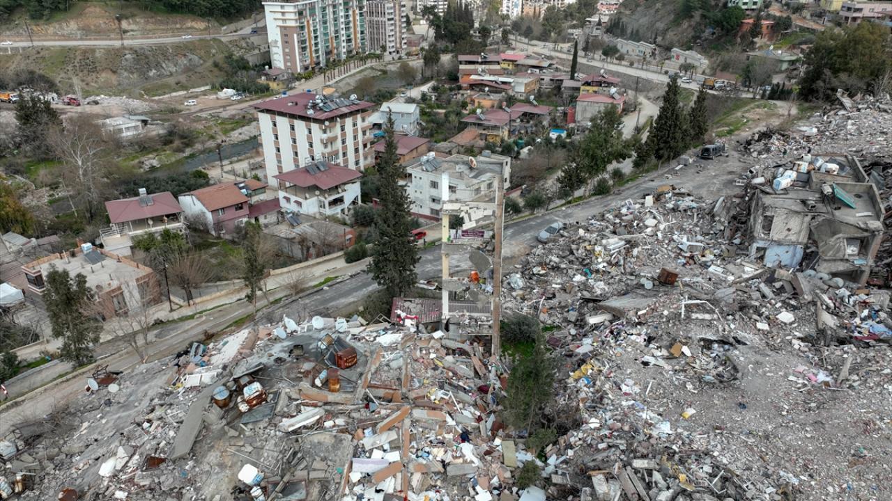 "Asrın felaketi" olarak nitelenen Kahramanmaraş merkezli depremlerin büyük yıkıma yol açtığı Hatay'ın Kırıkhan ilçesinde çok sayıda bina yıkıldı veya hasar gördü.