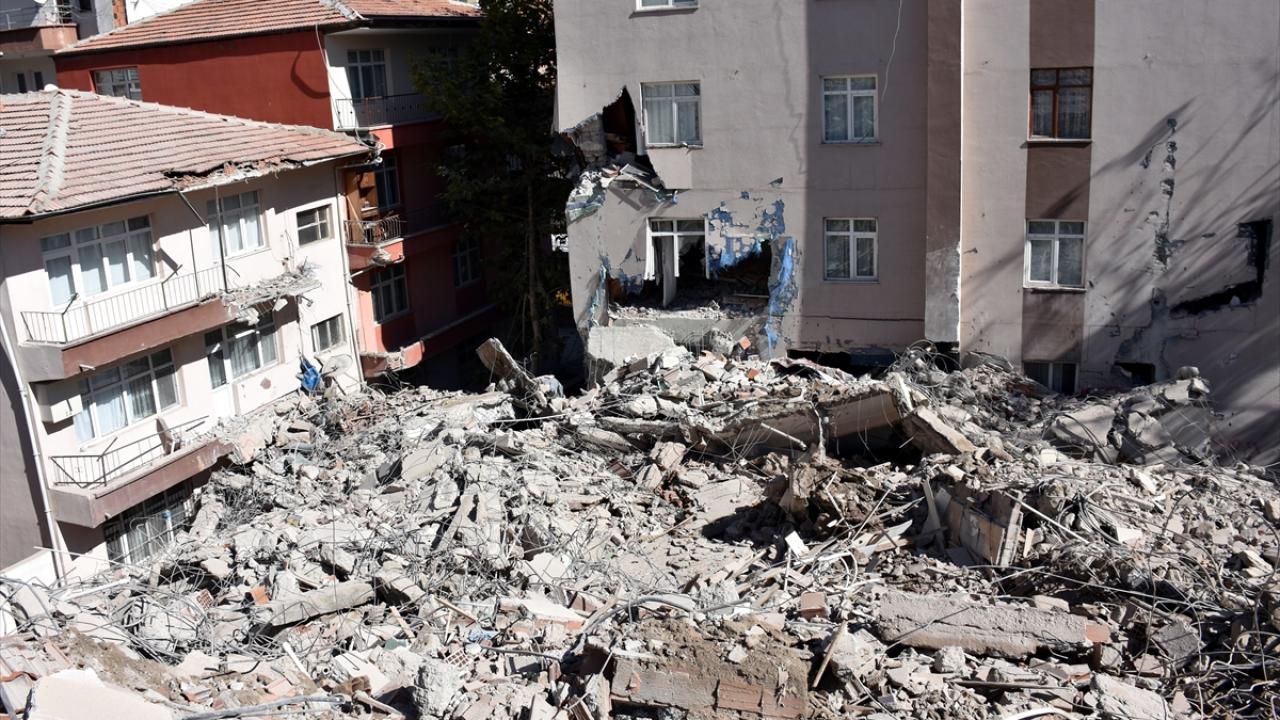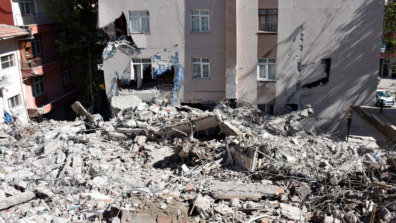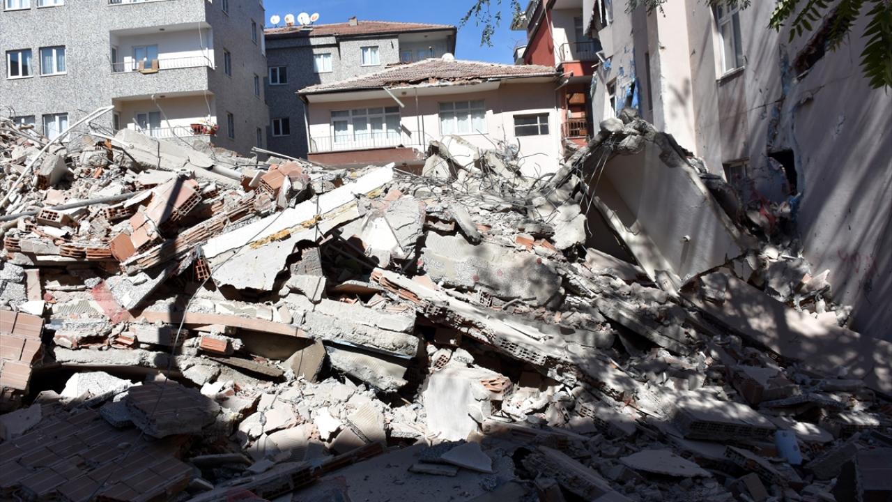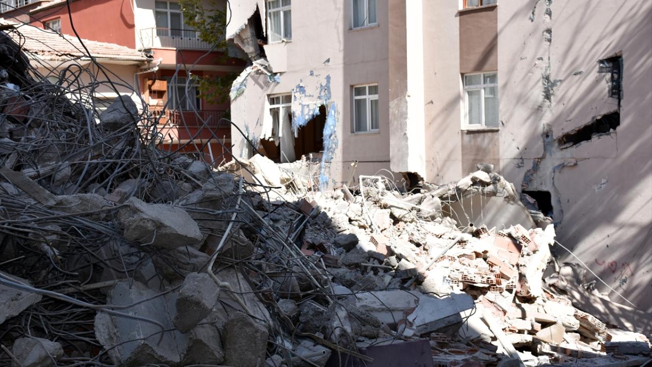 Müteahhit firmanın görevlilerince iş makinesi ile başlatılan yıkım sırasında binanın enkazı, etrafında bulunan biri 5, 2`si 3 katlı binaların üzerine devrildi.