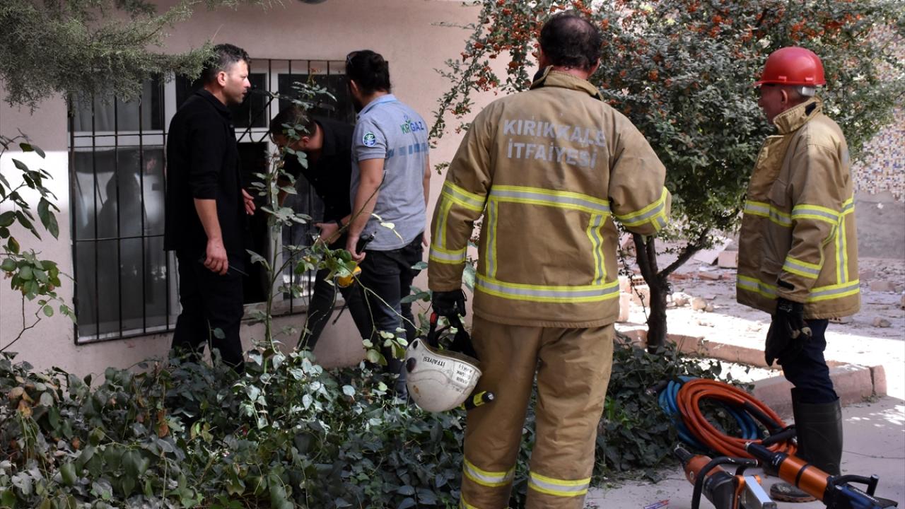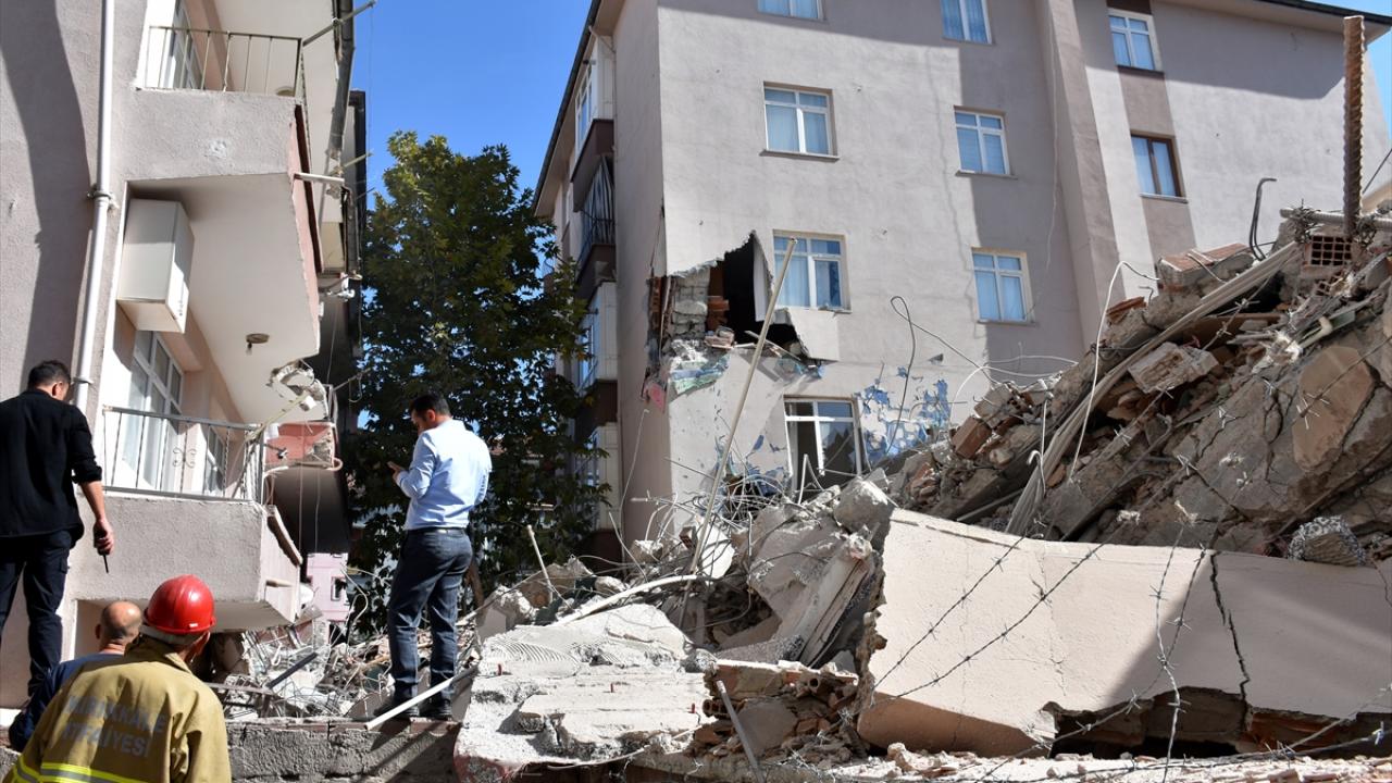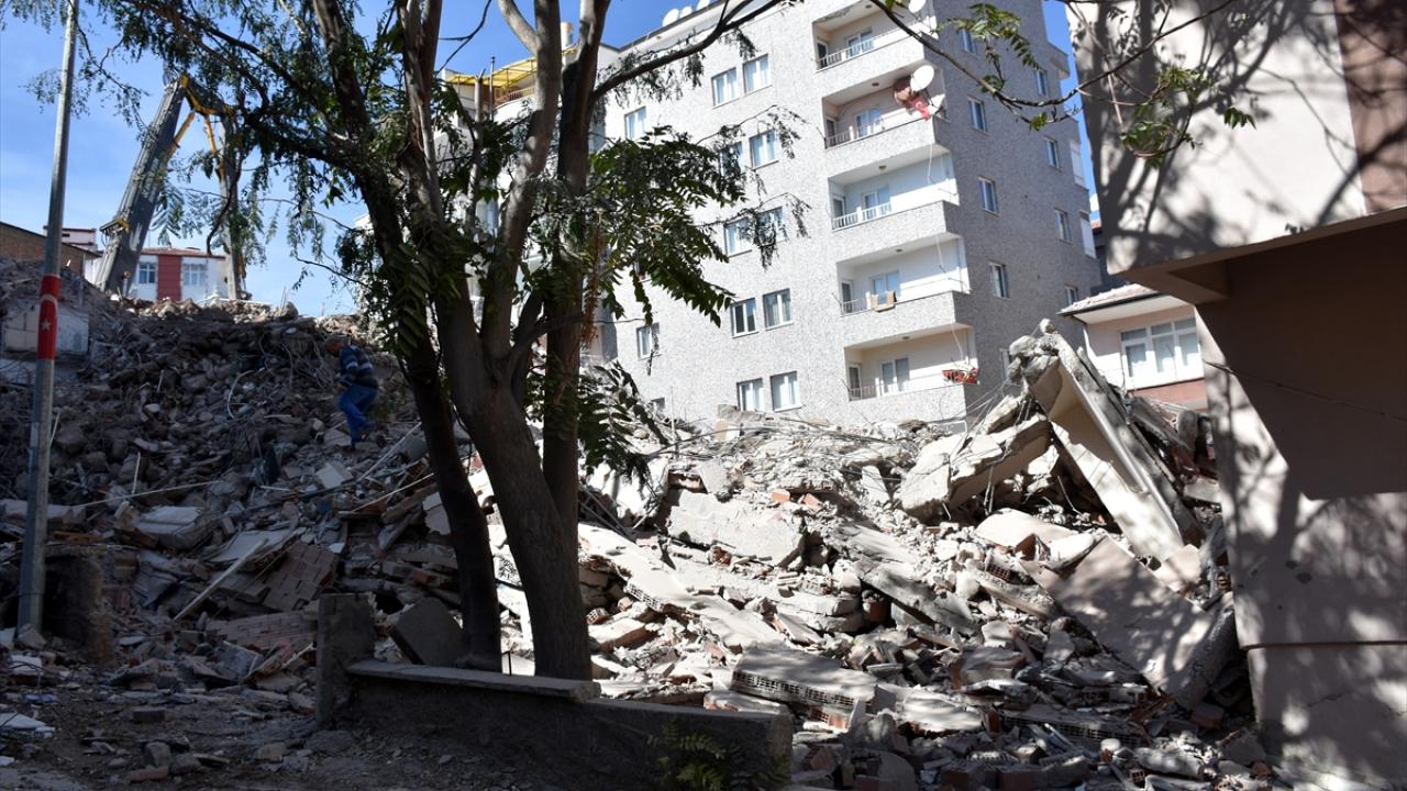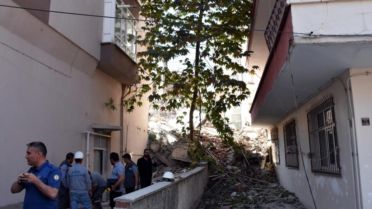 Zarar gören binalardan birinin girişini molozlar kapatınca zemin kattaki dairede bulunan 8 kişi mahsur kaldı.