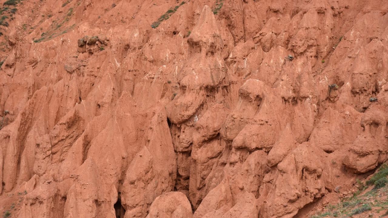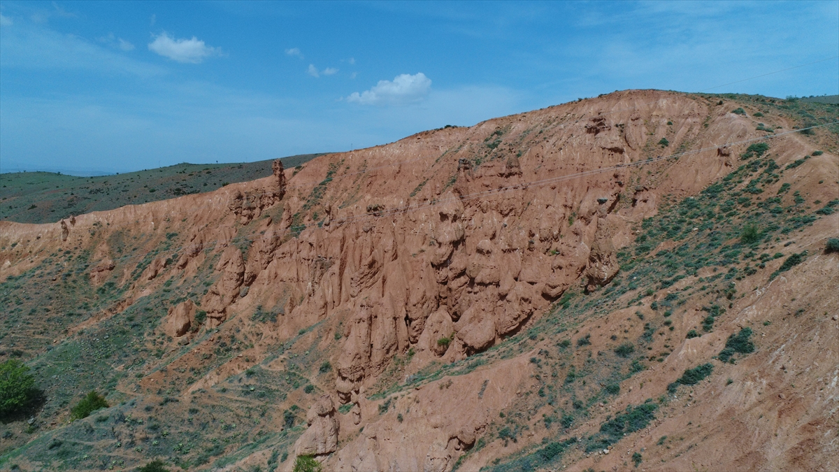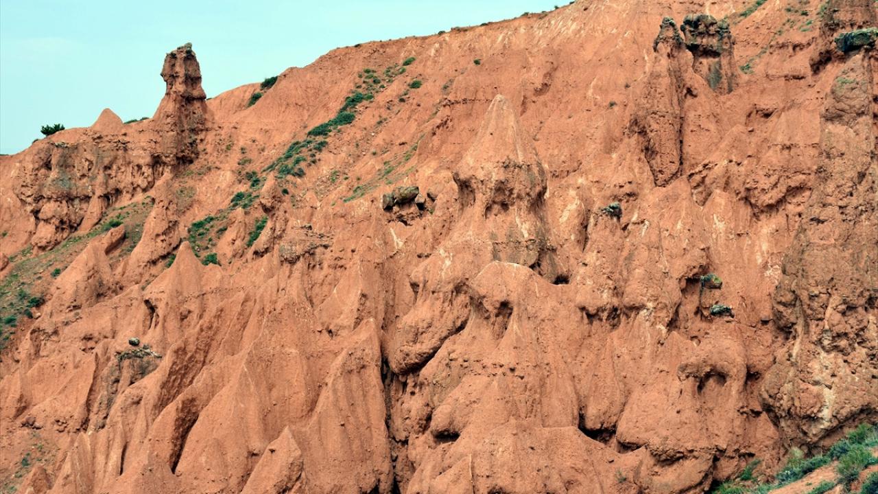 Kırıkkale'de bulunan ve kırmızı rengiyle diğerlerinden ayrılan peri bacaları dikkat çekiyor.