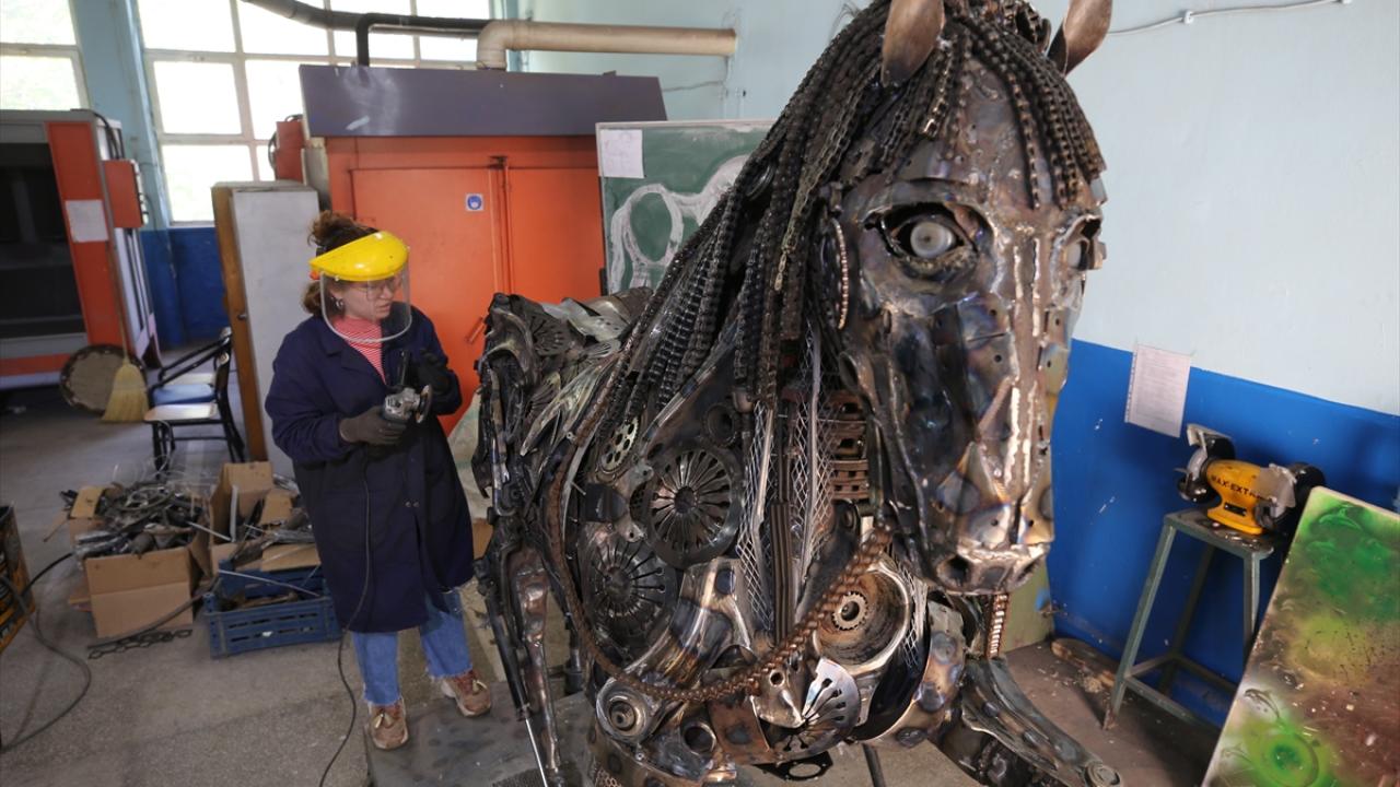 Kırklareli Olgunlaşma Enstitüsünde heykeltıraş usta öğreticisi olarak görev yapan 32 yaşındaki Can, atık malzemelerden "Trak atı" oluşturmaya karar verdi.