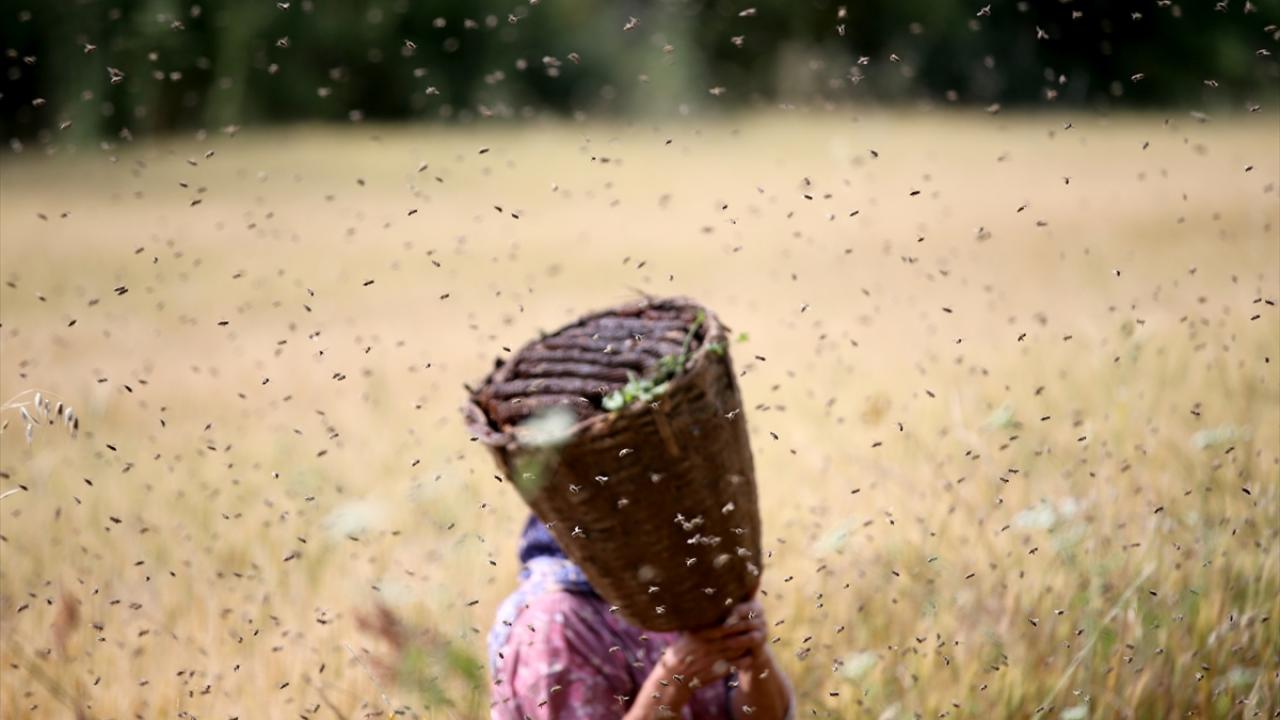 Kırklarelili kadın arıcının zorlu "bal ve oğul toplama" mesaisi