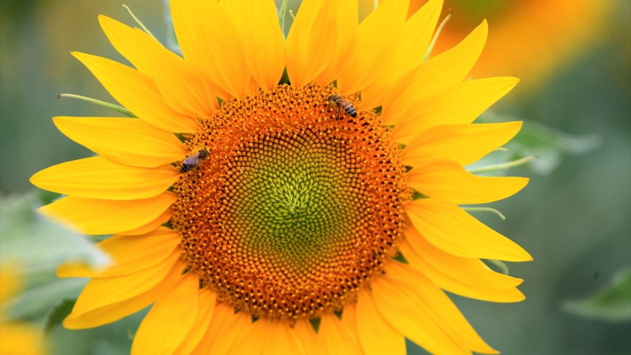Polen toplayan arılar ve kelebekler de ayçiçeklerinin güzelliğine güzellik katıyor.