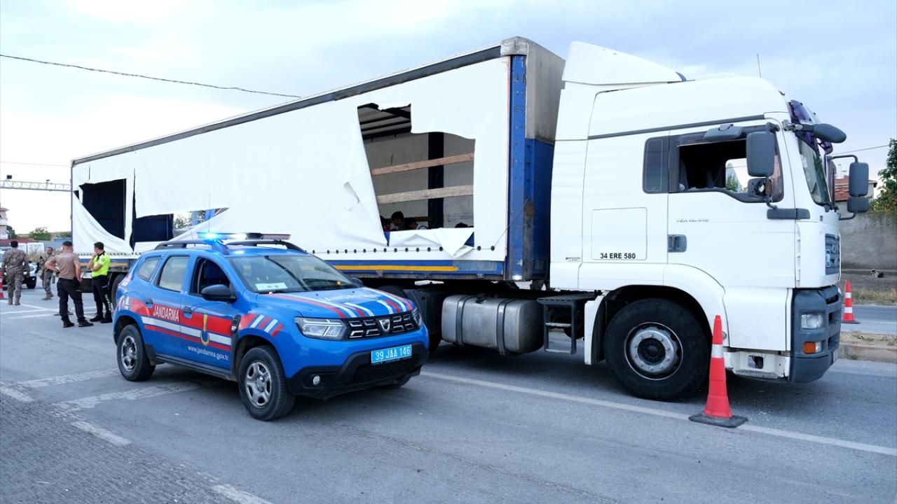 Sürücü ihtara uymayarak kent merkezine doğru manevra yaptı. Bu sırada tırın dorsesindeki brandayı yırtan göçmenlerden 7`si yola atladı.