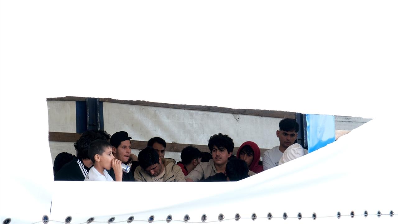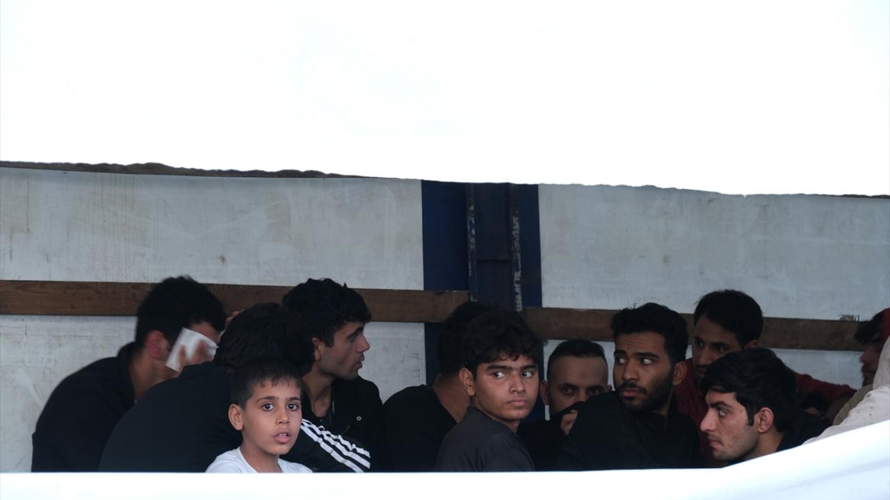Düzensiz göçmenler işlemleri için jandarma komutanlığına götürüldü.