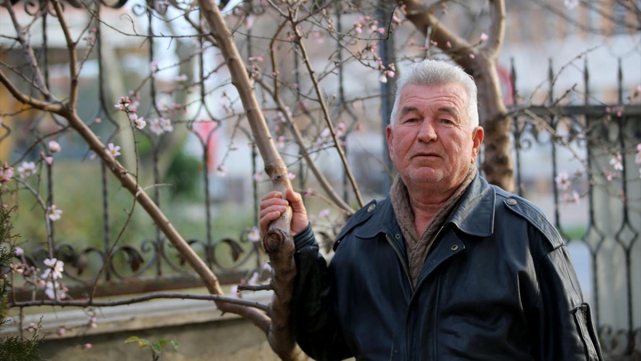 Kocahıdır Mahallesi`nde yaşayan Hüseyin Dere`nin evinin bahçesindeki badem ağacı hava sıcaklıklarına bağlı olarak çiçek açtı.
