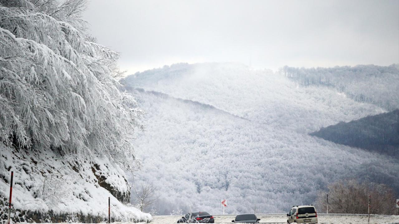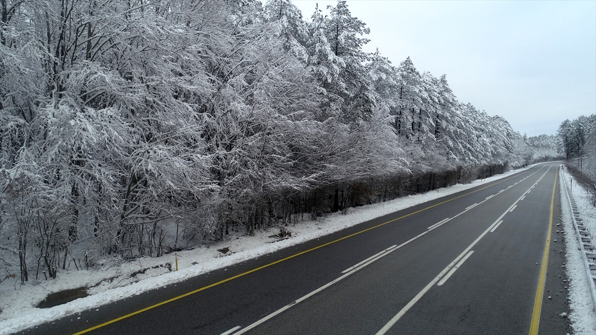 Kırklareli`nin yüksek kesimlerinde etkili olan yağışın ardından Istranca Ormanları beyaz örtüyle kaplandı.