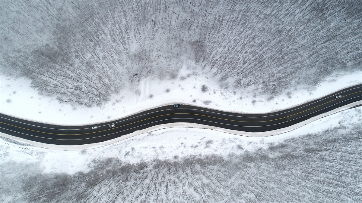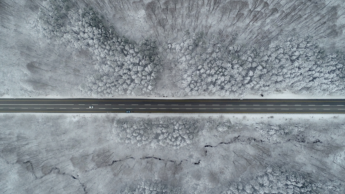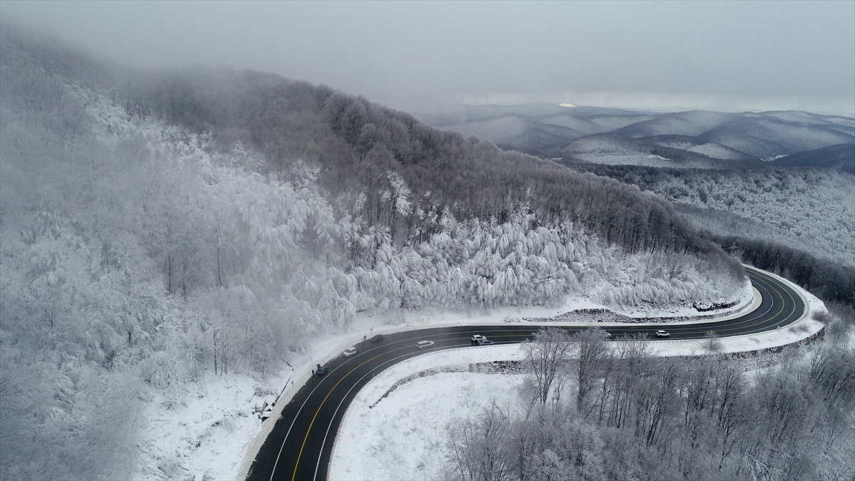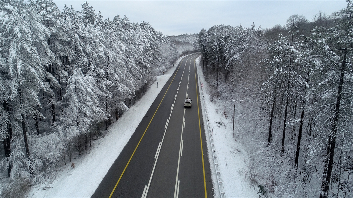 Trakya'nın Karadeniz kıyılarındaki meşe ve çam ağaçlarından oluşan Istranca Ormanları'nda kar yağışının oluşturduğu güzel manzara havadan görüntülendi.