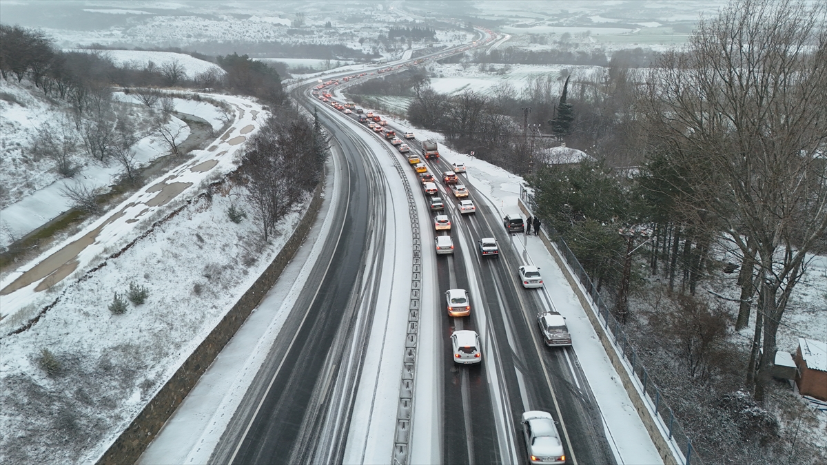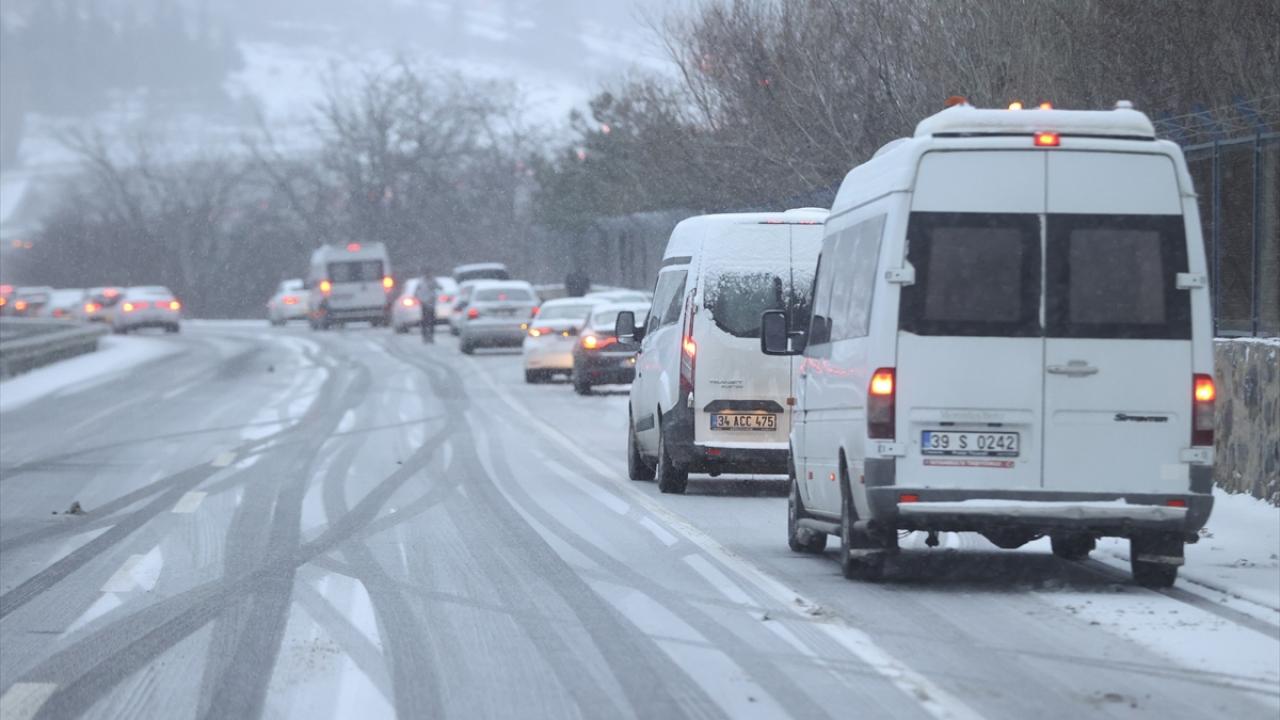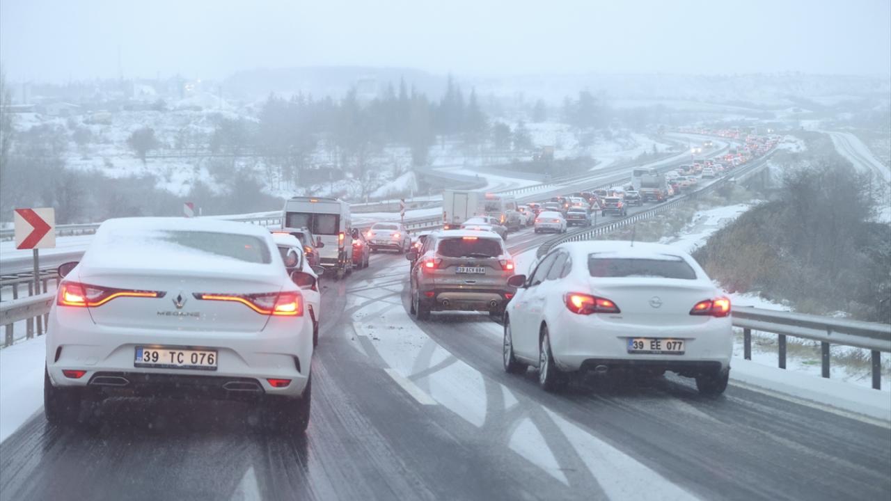 Polis ve jandarma ekipleri, kar kalınlığının 10 santimetreye yaklaştığı Demirköy ve Kofçaz ilçeleri ile Bulgaristan`a ulaşımın sağlandığı Dereköy Sınır Kapısı`nda kar lastiği olmayan araçların trafikte ilerlemesine müsaade etmiyor.