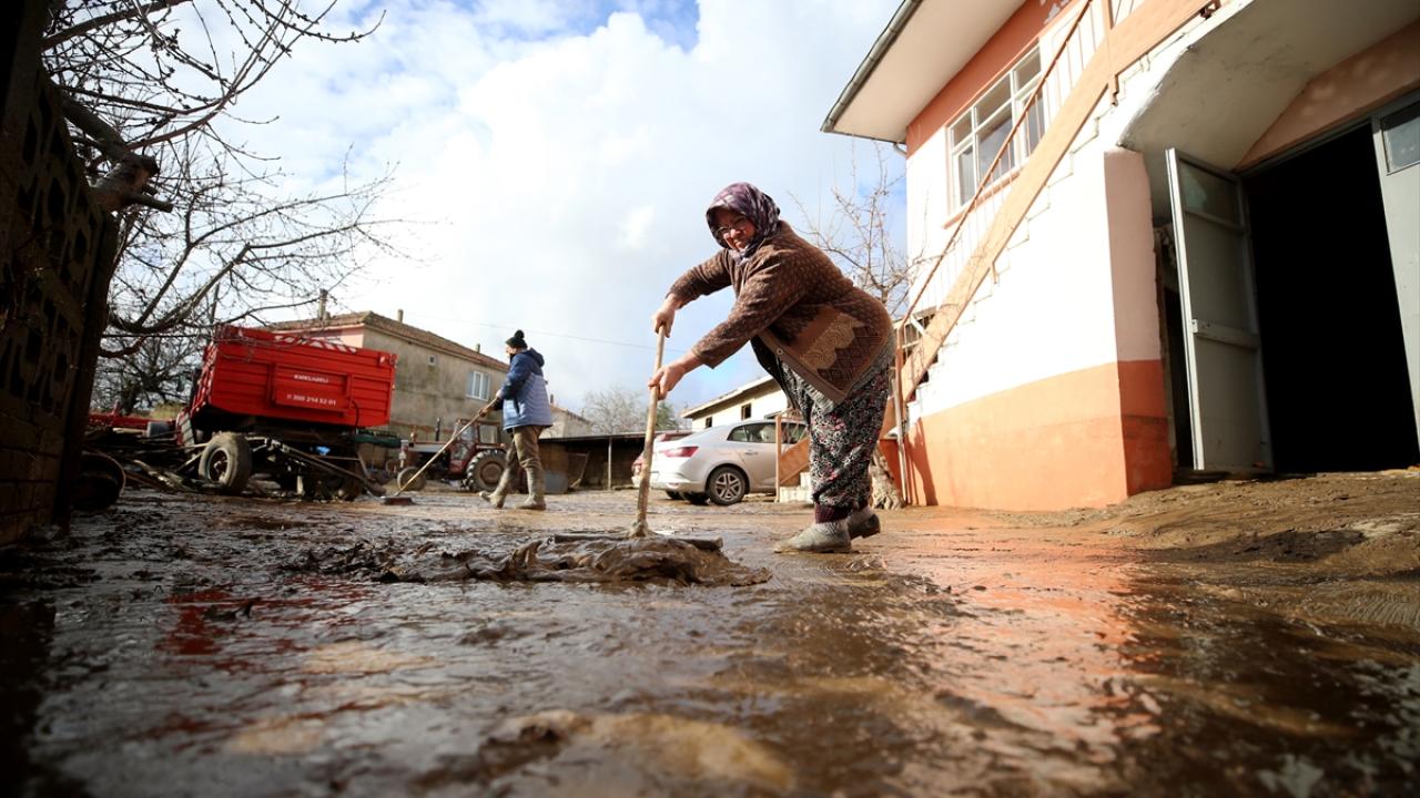 Evleri zarar gören vatandaşlar da temizlik çalışmalarını sürdürüyor.