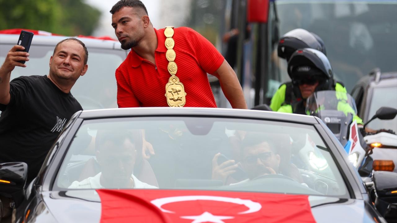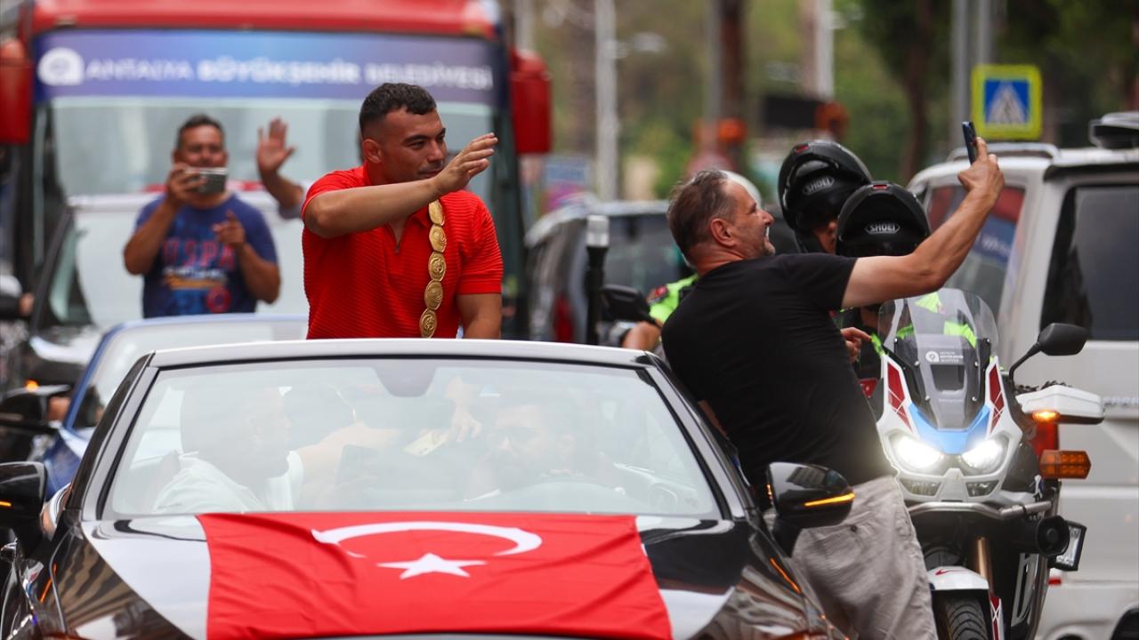 Zeybek, Antalya girişindeki Döşemealtı ilçesinde ailesi ve Antalyalılar tarafından karşılandı.