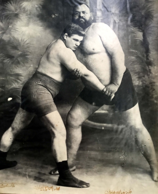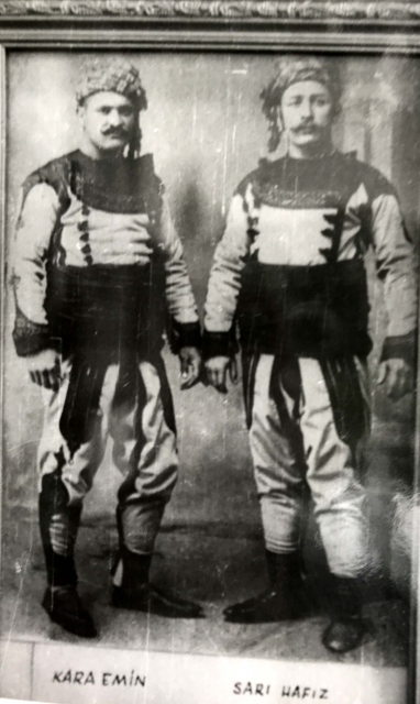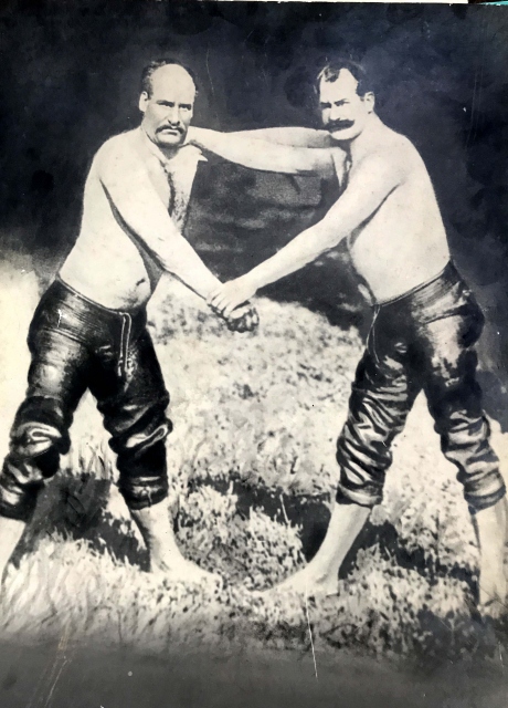 Edirne Müzesi envanterine kayıtlı Kırkpınar Yağlı Güreşleri siyah-beyaz fotoğrafları, tarihi güreşlerin geçmişine götürüyor. Fotoğrafta Kara Emin (solda) ve Sarı Hafız görülüyor.