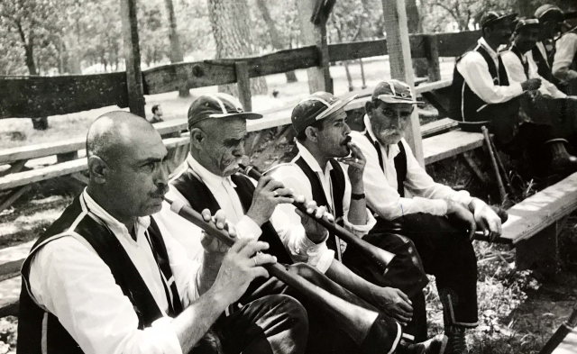 Edirne Müzesi envanterine kayıtlı Kırkpınar Yağlı Güreşleri siyah-beyaz fotoğrafları, tarihi güreşlerin geçmişine götürüyor. Fotoğrafta Kırkpınar zurnacıları görülüyor.