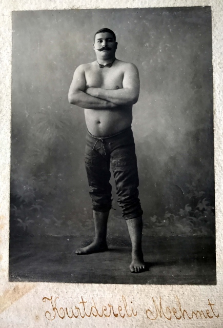 Edirne Müzesi envanterine kayıtlı Kırkpınar Yağlı Güreşleri siyah-beyaz fotoğrafları, tarihi güreşlerin geçmişine götürüyor. Fotoğrafta Kurtdereli Mehmet görülüyor.
