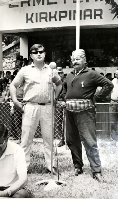 Edirne Müzesi envanterine kayıtlı Kırkpınar Yağlı Güreşleri siyah-beyaz fotoğrafları, tarihi güreşlerin geçmişine götürüyor. Fotoğrafta cazgırın mani okuması sırasından bir an görülüyor.