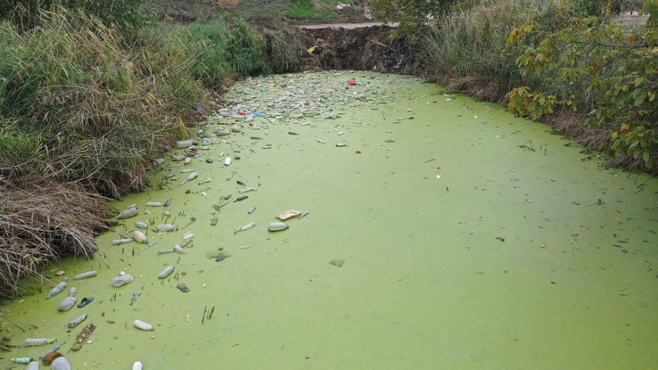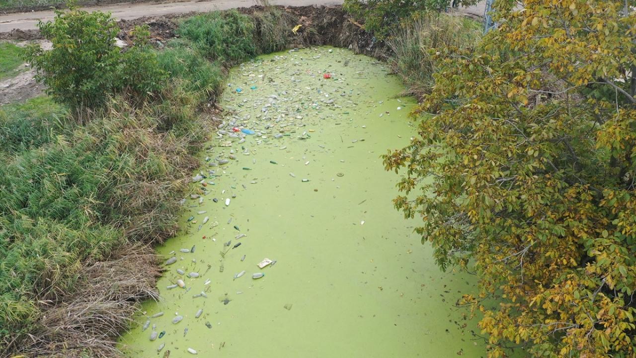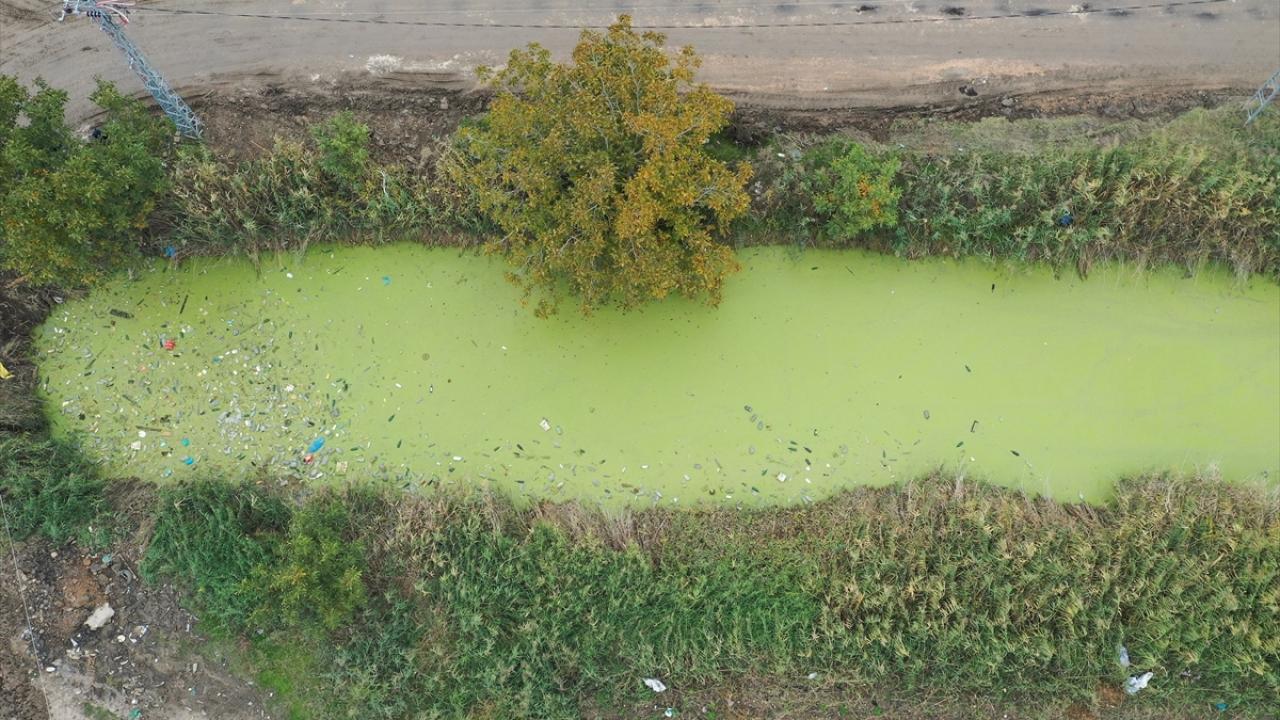 Edirne'de, halk arasında Bayır deresi olarak bilinen, rengi yeşile dönen ve üzeri çöplerle kaplanan su tahliye kanalında yetkililer incelemede bulundu.