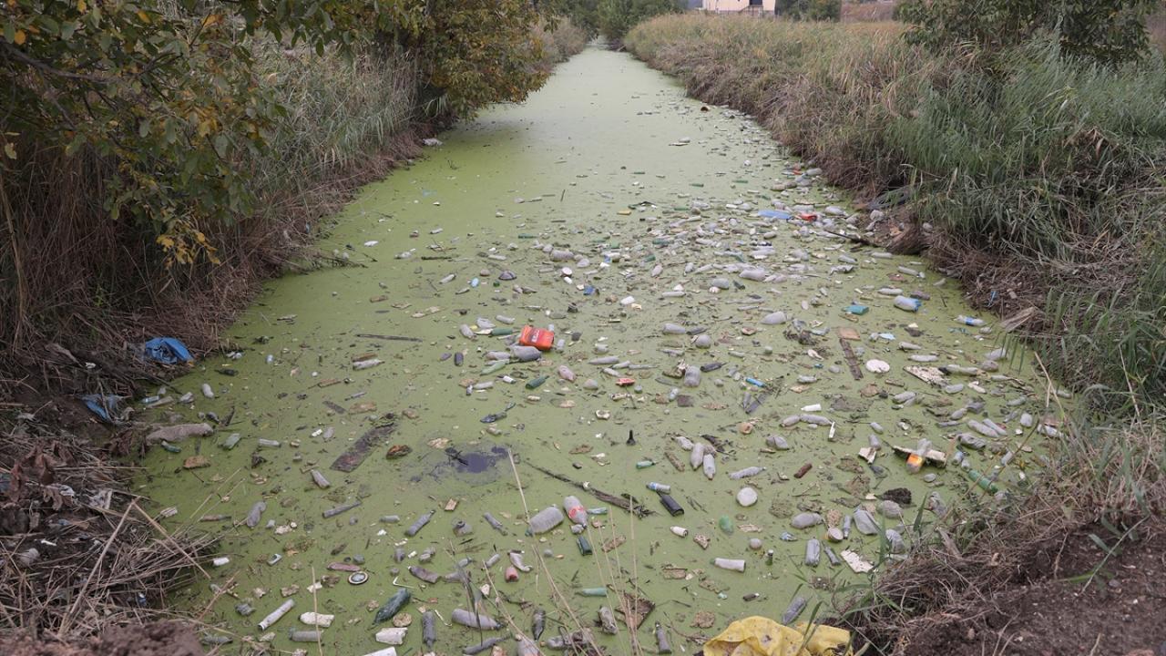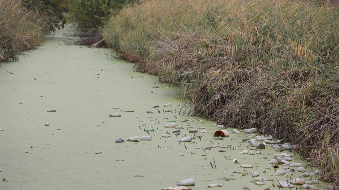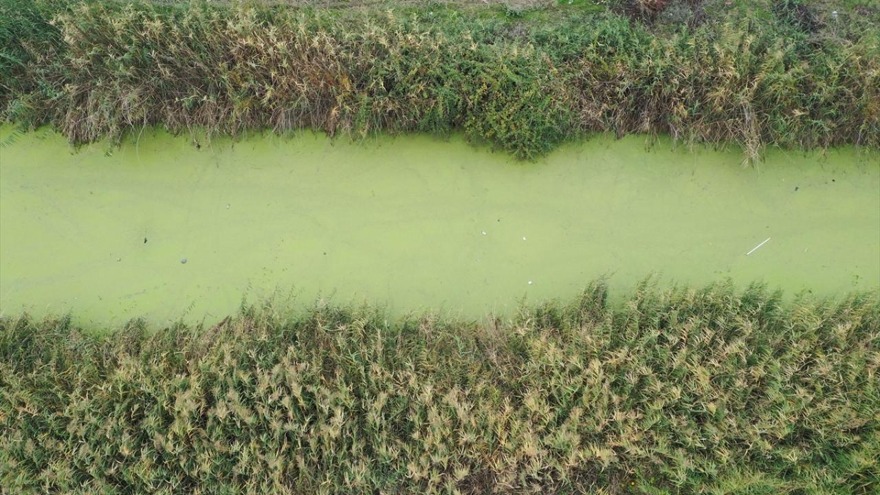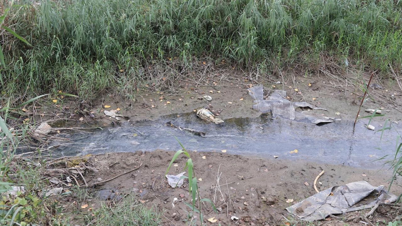 Edirne'de, halk arasında Bayır deresi olarak bilinen, rengi yeşile dönen ve üzeri çöplerle kaplanan su tahliye kanalında yetkililer incelemede bulundu.