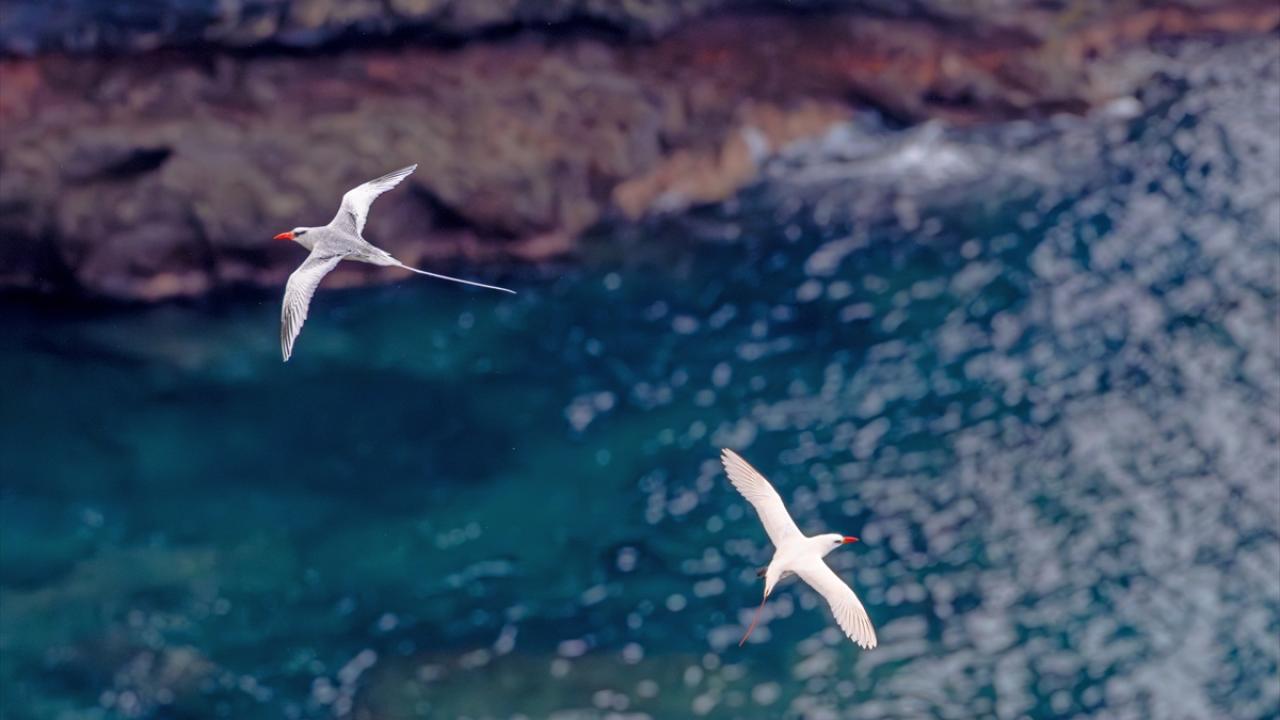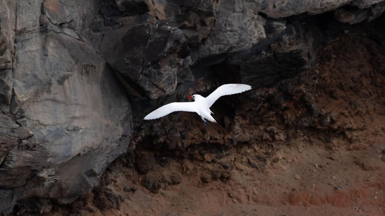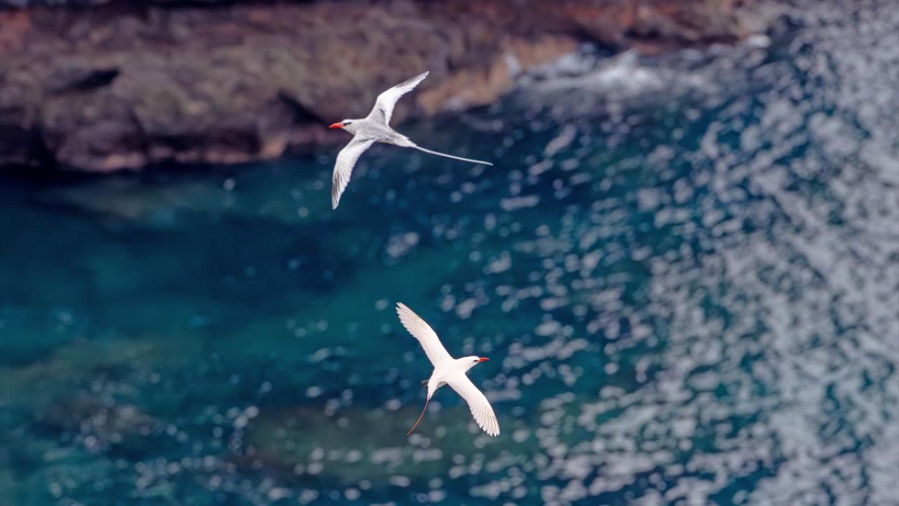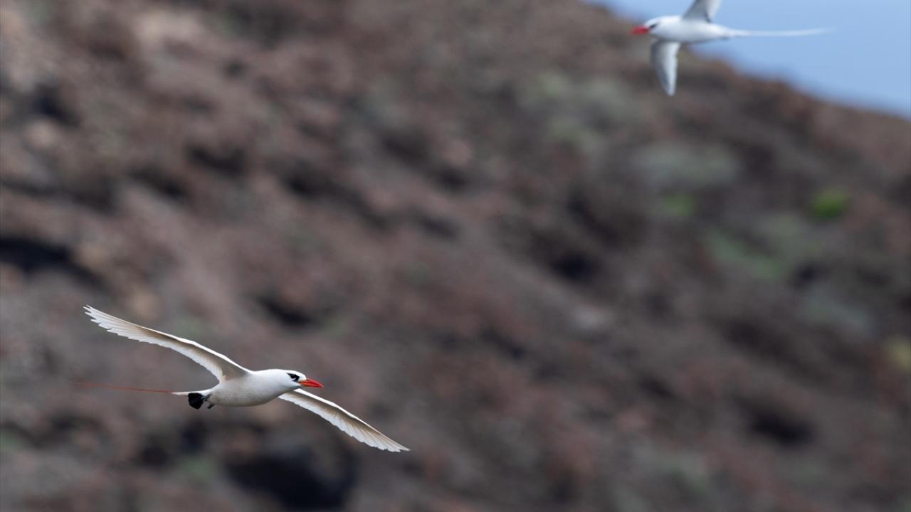 Adada, bölgede yaygın olarak görülen kırmızı gagalı tropik kuşu (Phaethon aethereus) da görüntülendi.