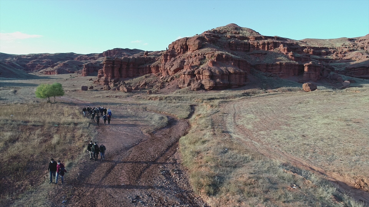 Son dönemde gerçekleştirilen projeyle turizm potansiyelinin artırılması için yapımı süren bir restoranın yanı sıra yürüyüş yolları yapılan doğa harikası Narman Peri Bacaları`nın eşsiz manzarası AA ekibince drone ile havadan görüntülendi.