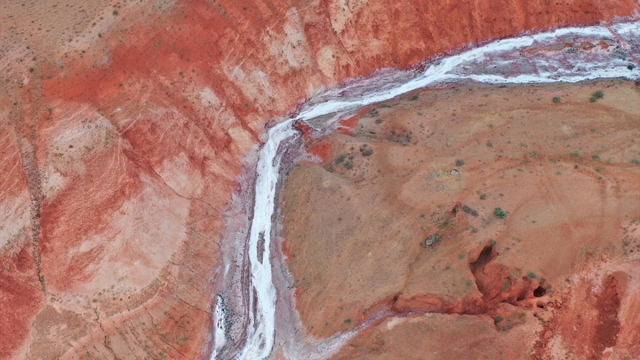 Bölgedeki tuz rezervi nedeniyle hiçbir bitkinin yetişmediği kırmızı toprakların arasından geçen tuz deresi, güzel görüntüler oluşturuyor.