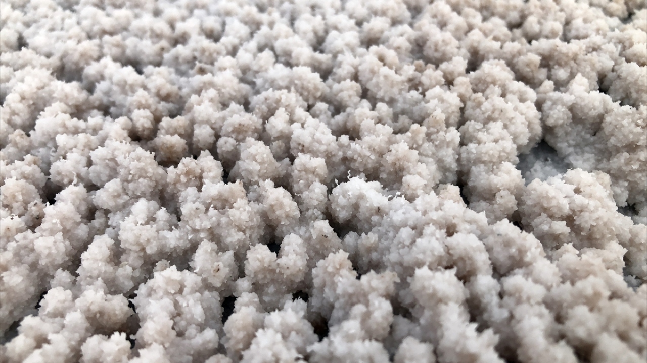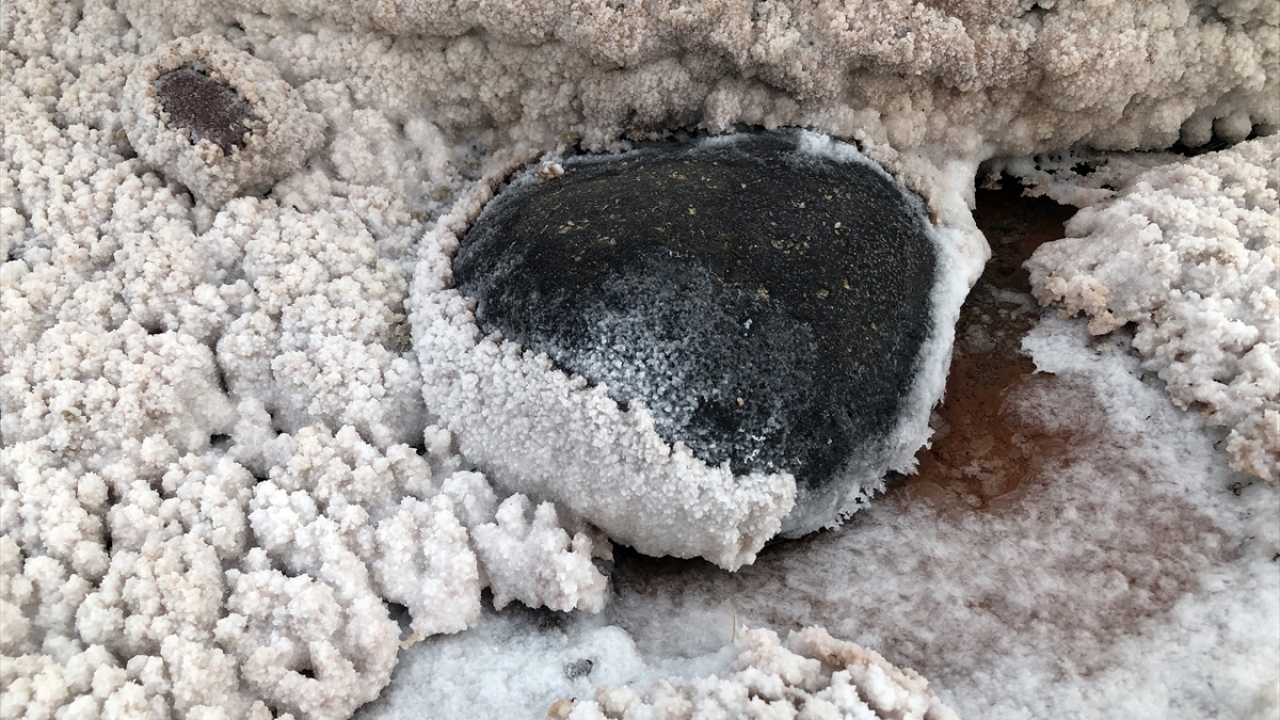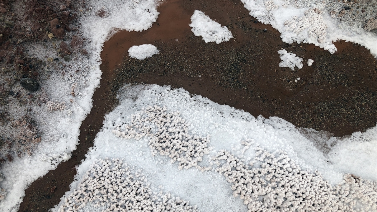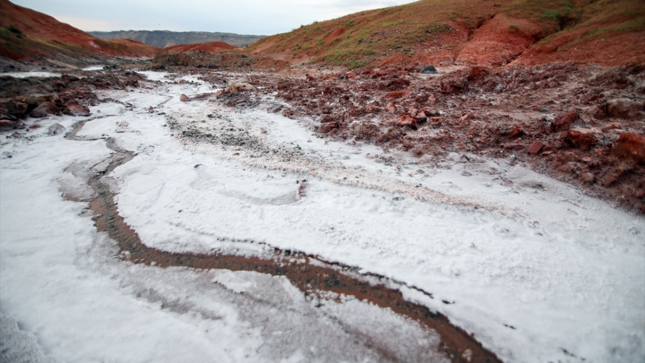 Suların oluşturduğu dere, taşıdığı yoğun tuz miktarı nedeniyle adeta soğuktan donmuş bir akarsuyu andırıyor.