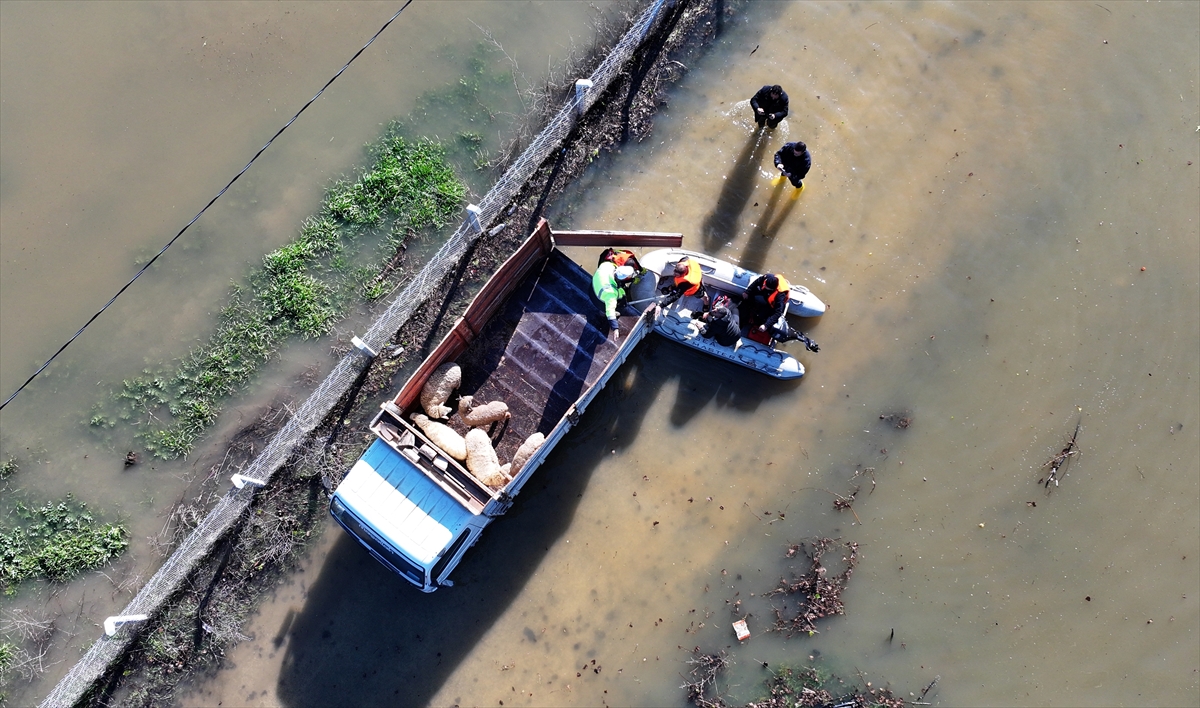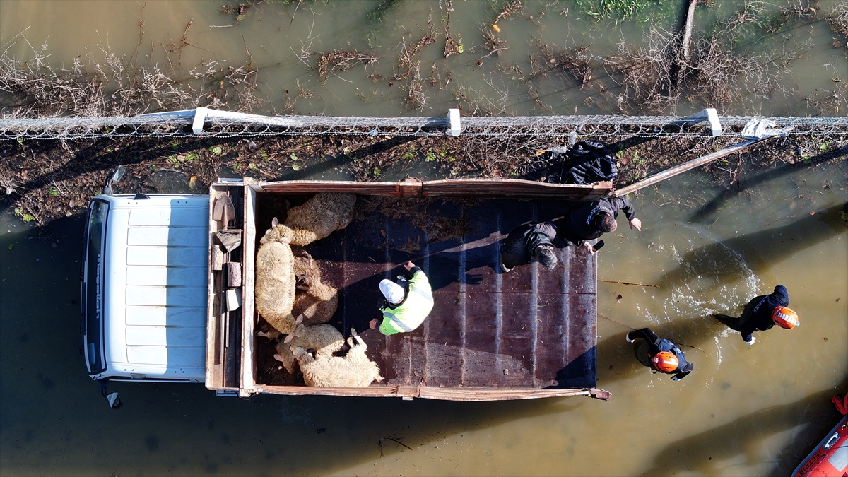 Taşkın nedeniyle Bosnaköy mevkisinde mahsur kalan vatandaşlar ve hayvanlar ekiplerce kurtarıldı.