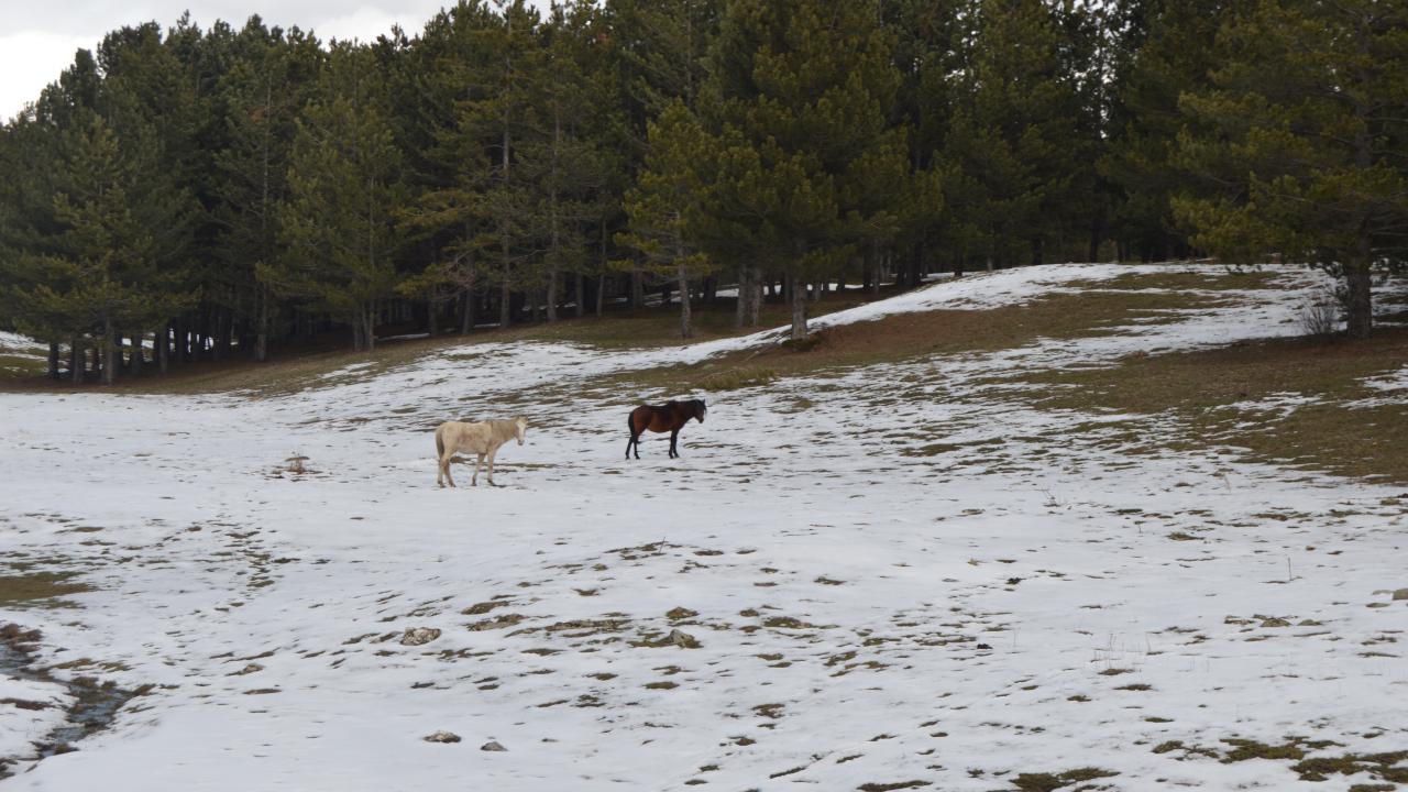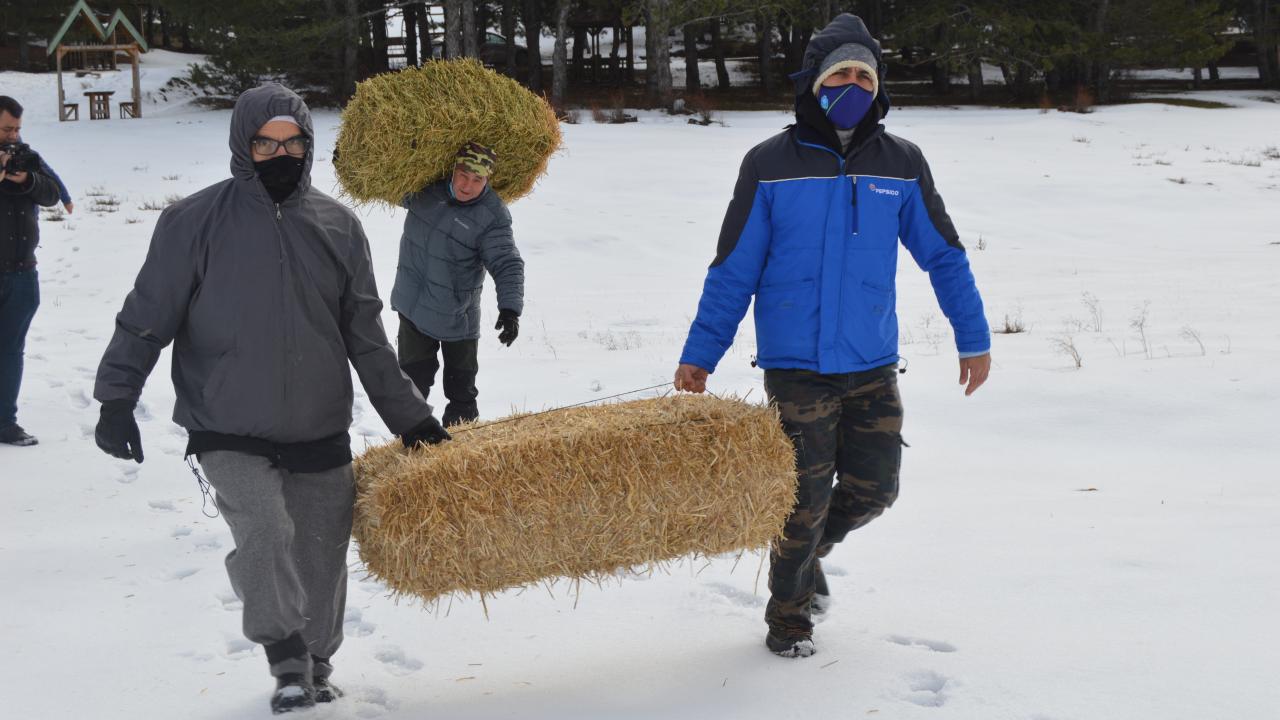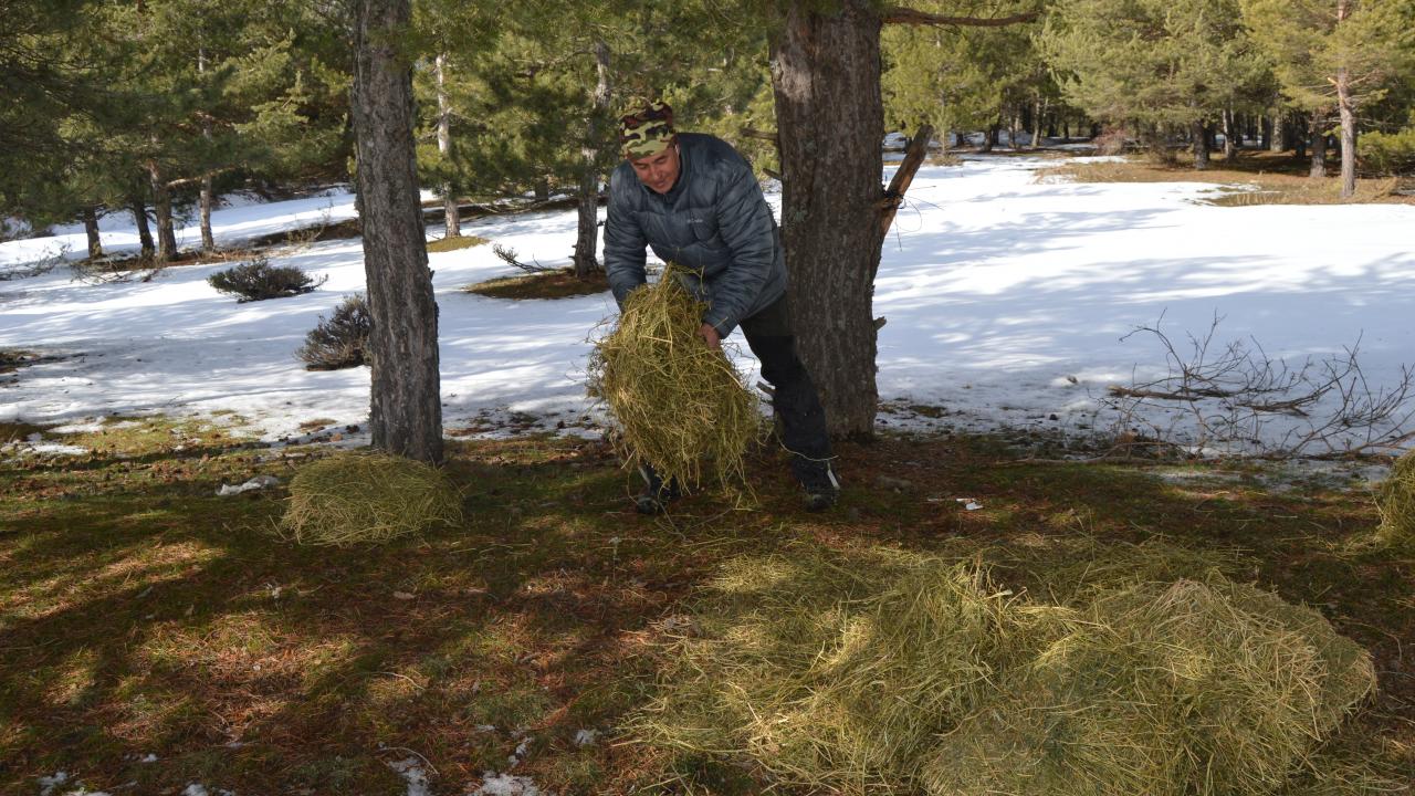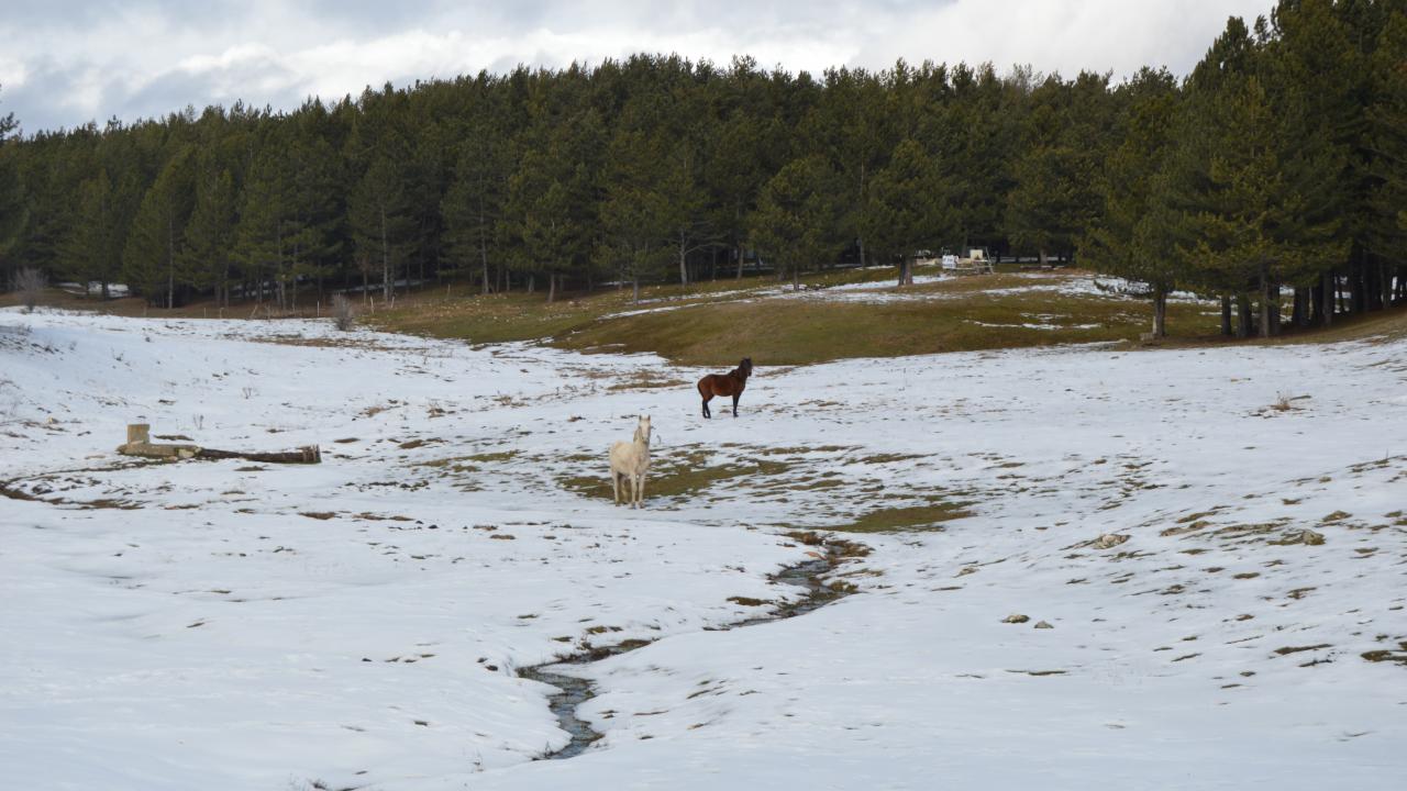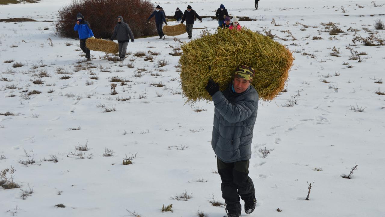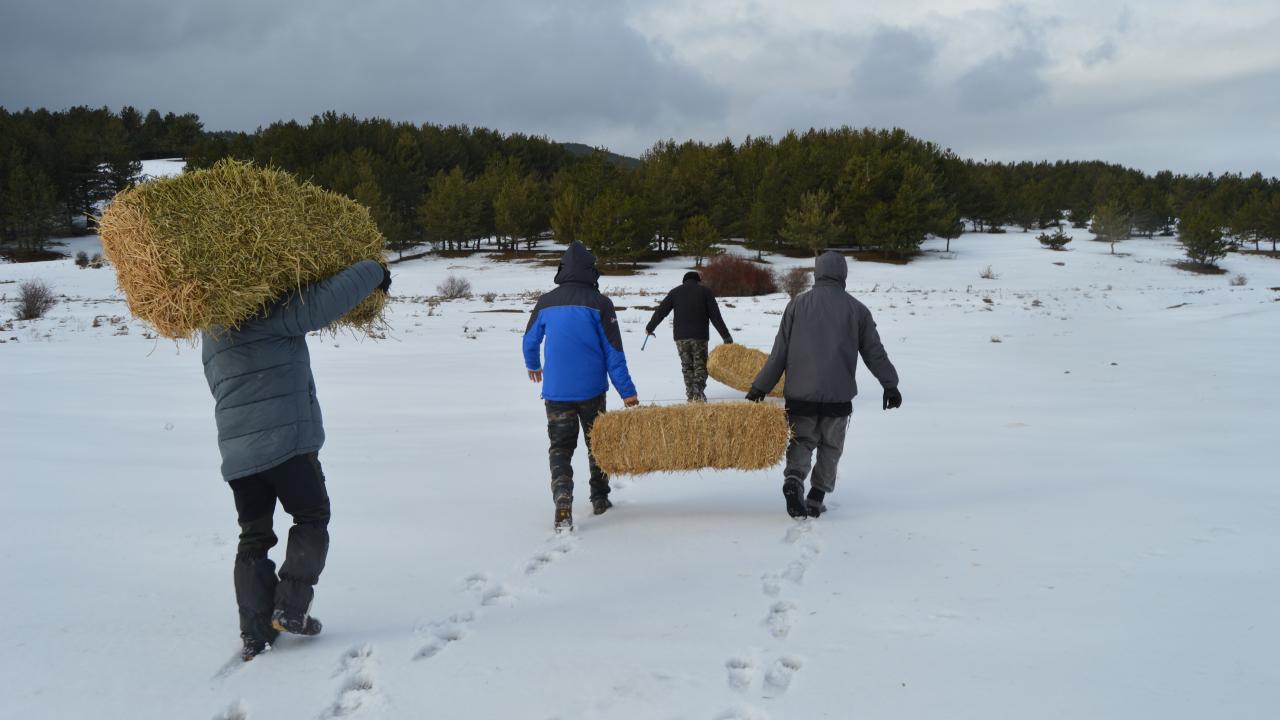 Bölgedeki yaban hayvanları ve yılkı atları için yemleme çalışması yaptıklarını söyleyen Yıldız: