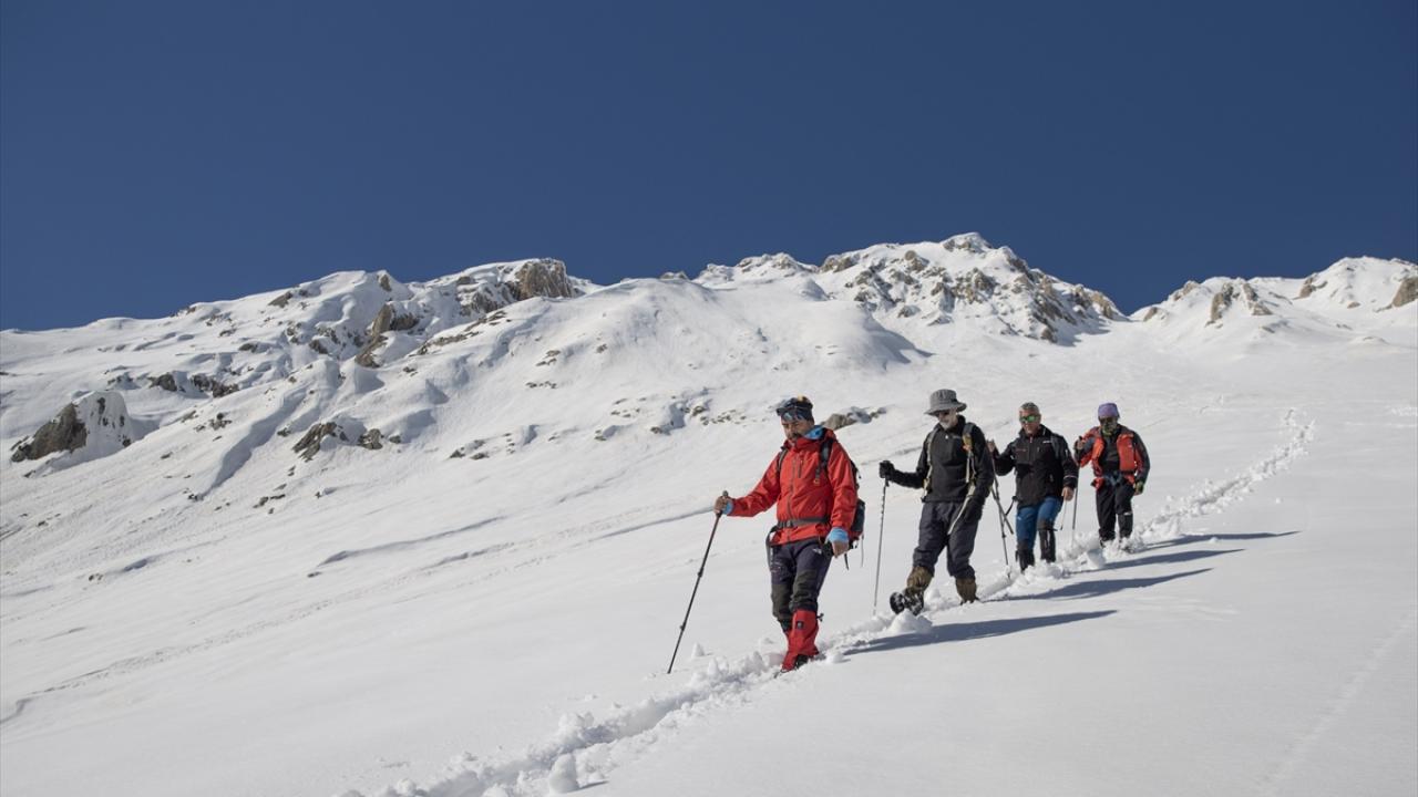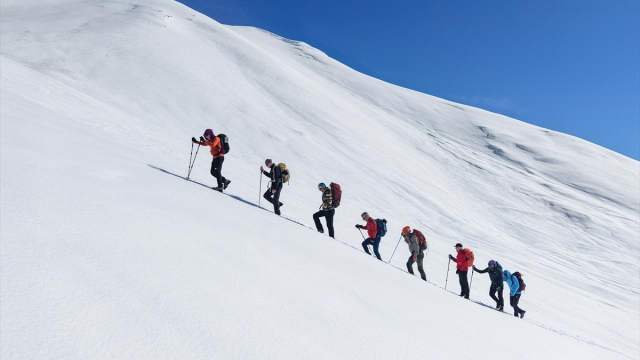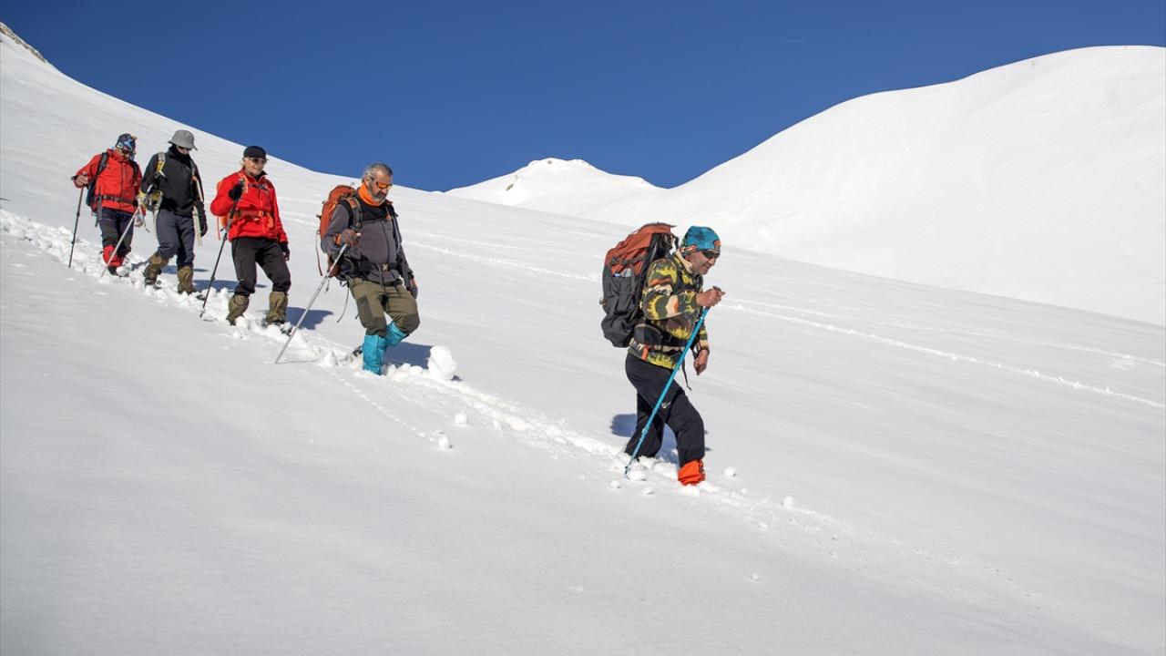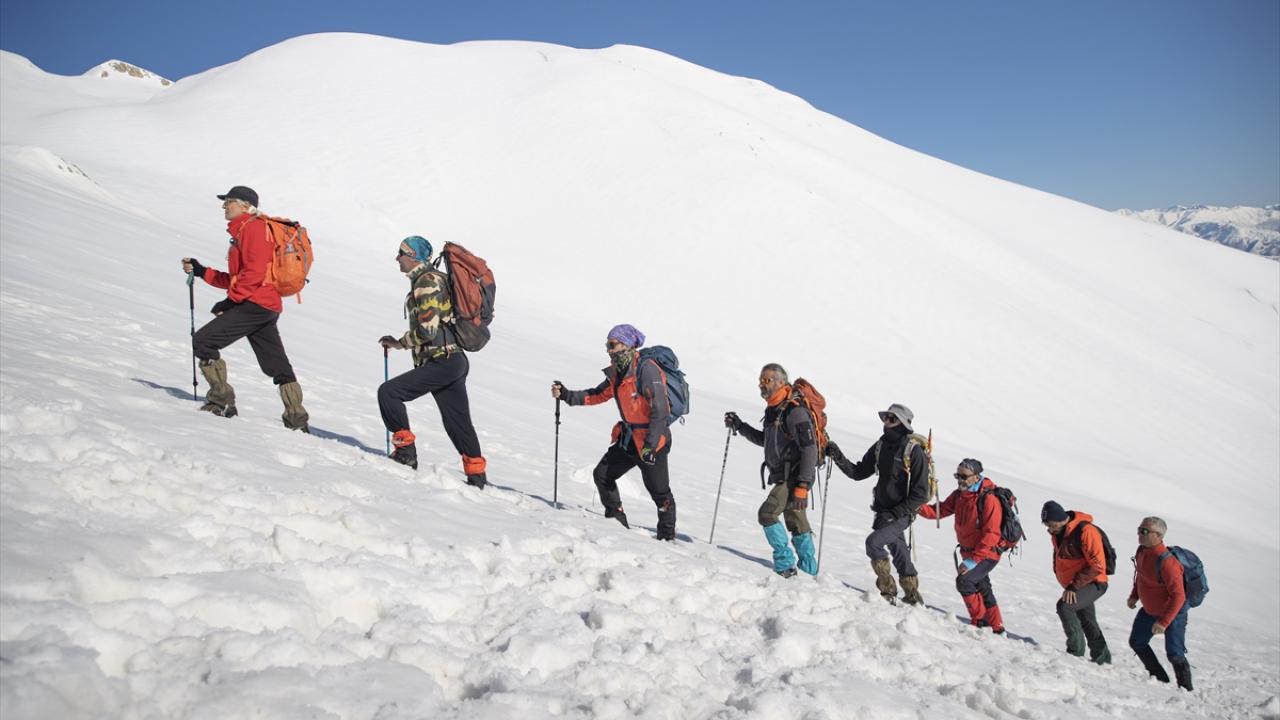 Araçlarıyla Gözeler köyüne bağlı Elbaba mezrasına gelen 10 dağcı, gerekli hazırlıklarını yaptıktan sonra beyaz örtü üzerinde tek sıra halinde yürüyüşe geçti.
